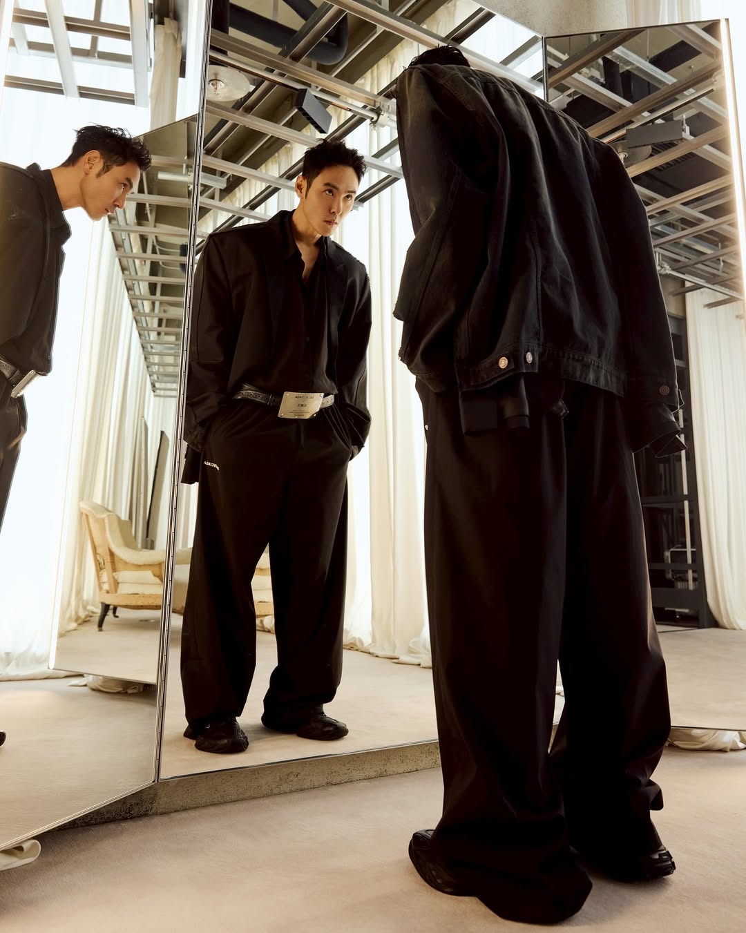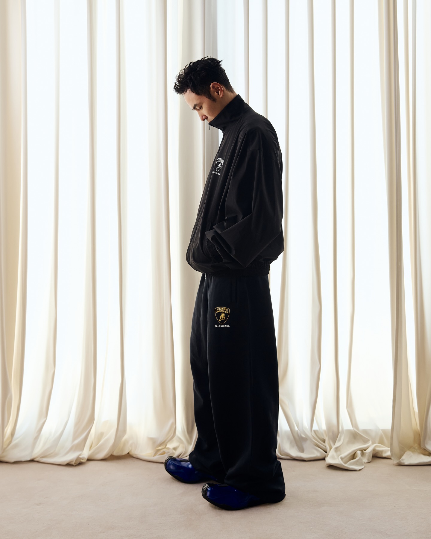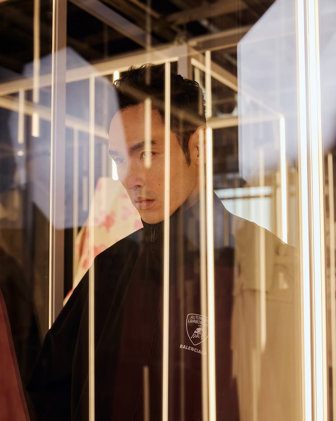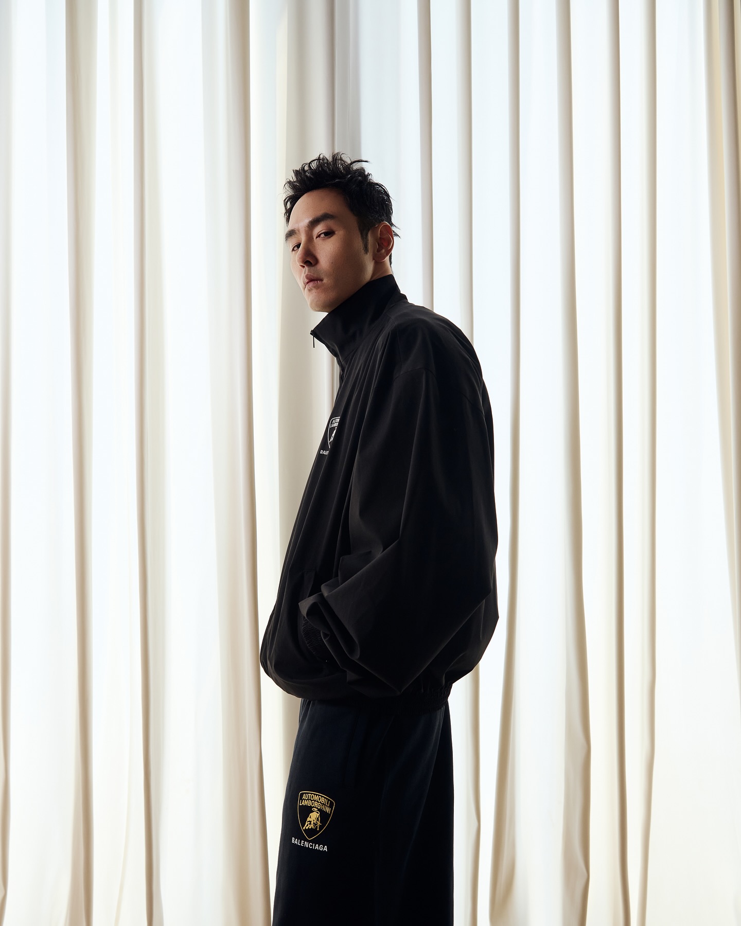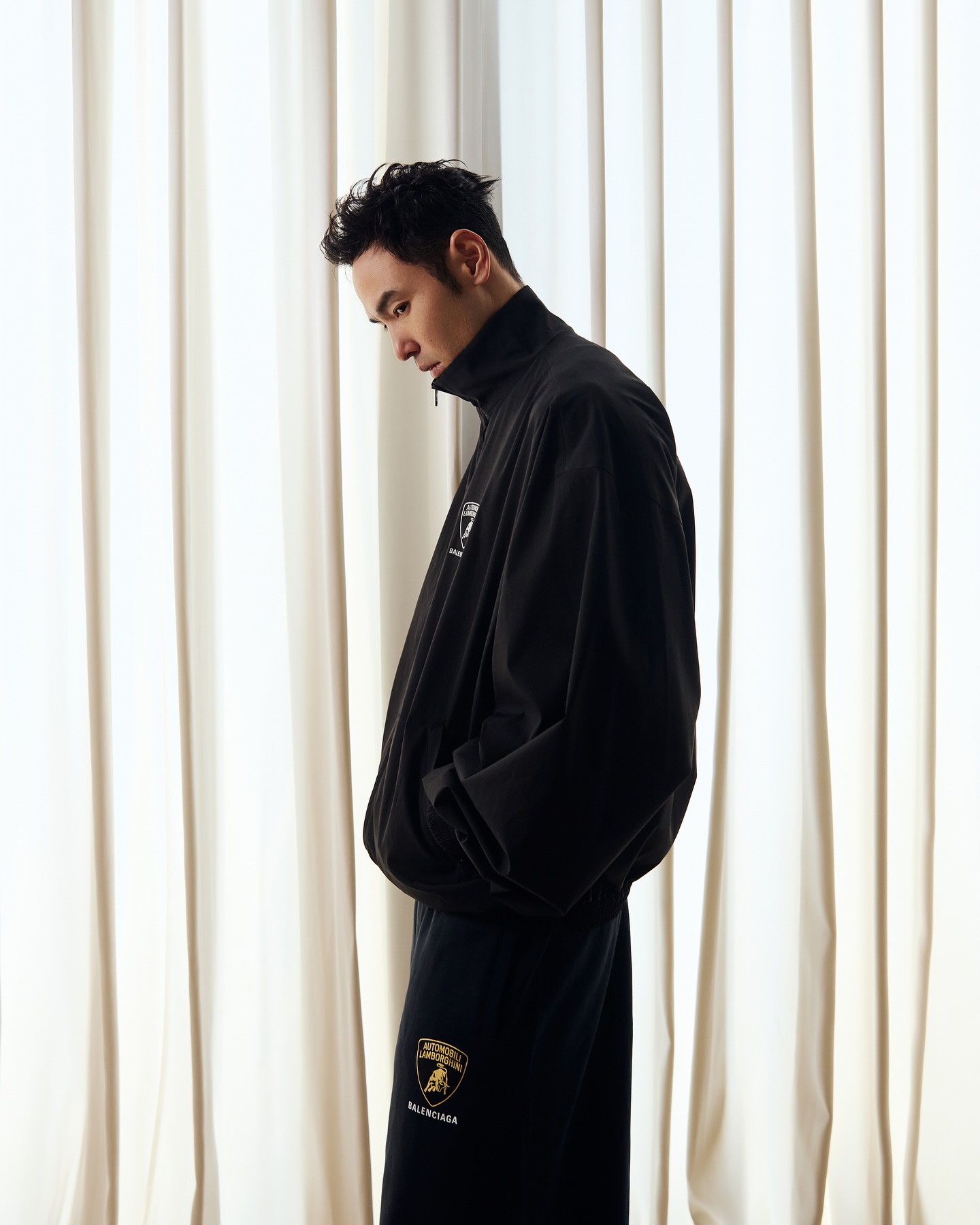 阮经天果然是玩潮流的狠人,最近上身了巴黎世家 x 兰博基尼系列,表情更是这套造型的精随。
