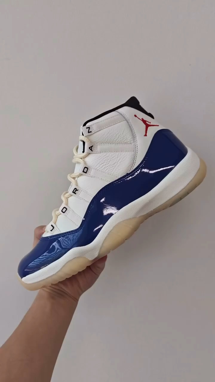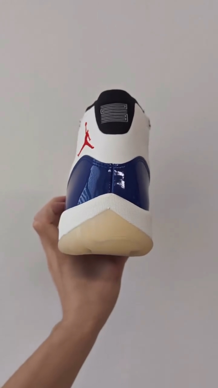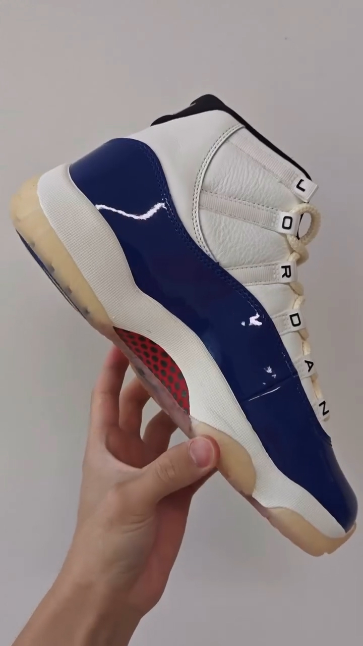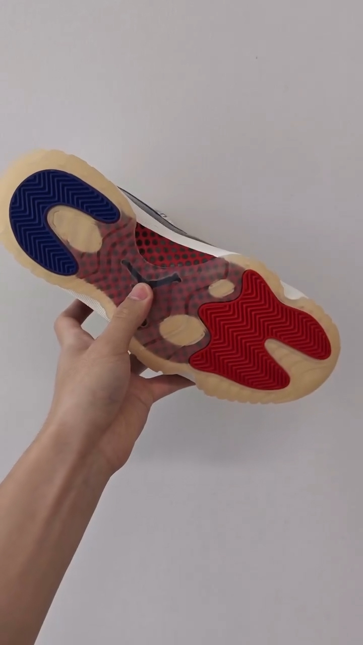 颇为不同的是在鞋带扣上,装饰有 JORDAN 组成的字样,区别于大多 Air Jordan 11。