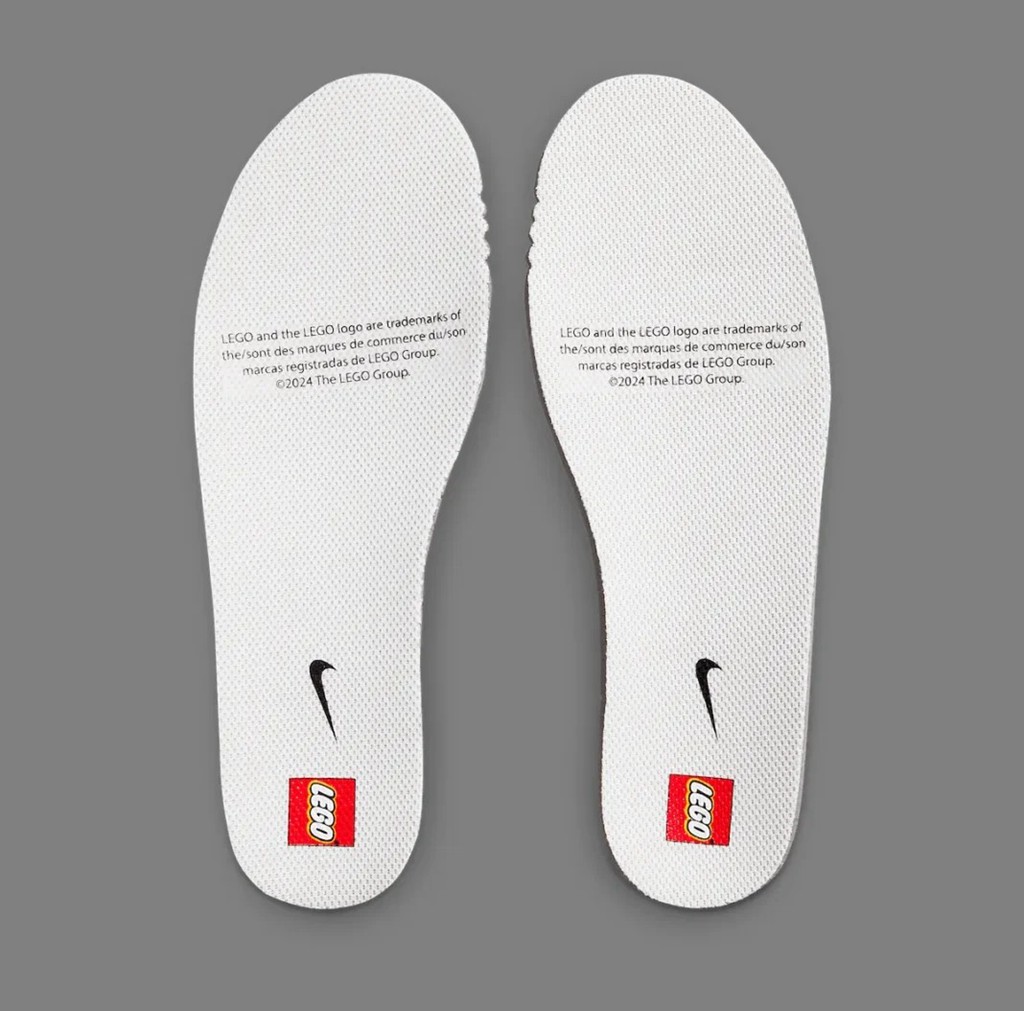 鞋舌和鞋垫都有 LEGO 经典 Logo,强调联名主题。
