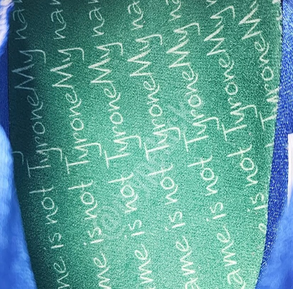 鞋身大量充斥着 “Tyrone Johnson” 的设计细节,灵感源自甜瓜小时候的一则趣事。