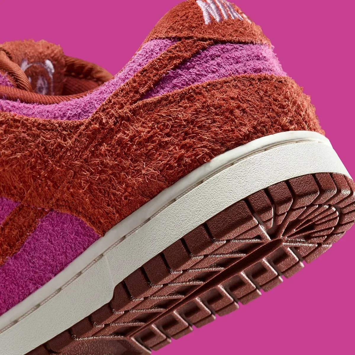 鞋身覆盖长绒麂皮材质,质感表现相当突出,红粉双色拼接,颜值也十分骚气。
