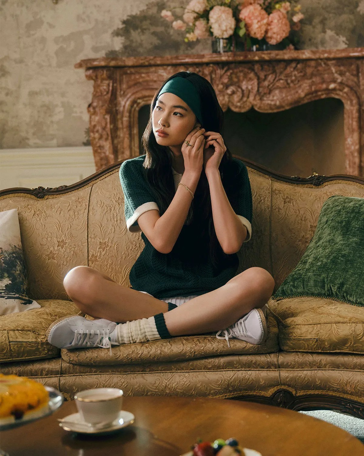 鞋型是以 Stan Smith 为蓝本。有个性的 “草编” 中底,这一改动也让整双鞋显得更修长。