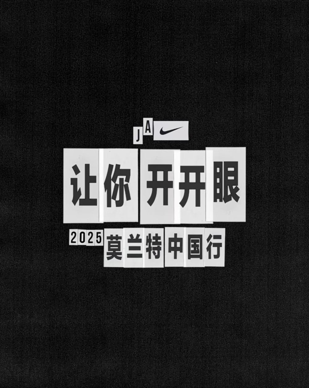 刚刚,Nike 与莫兰特共同官宣,开启 2025 “让你开开眼”(Make Them Watch)世界篮球之旅,同时大家最为期待的「莫兰特中国行」也迎来进一步曝光。