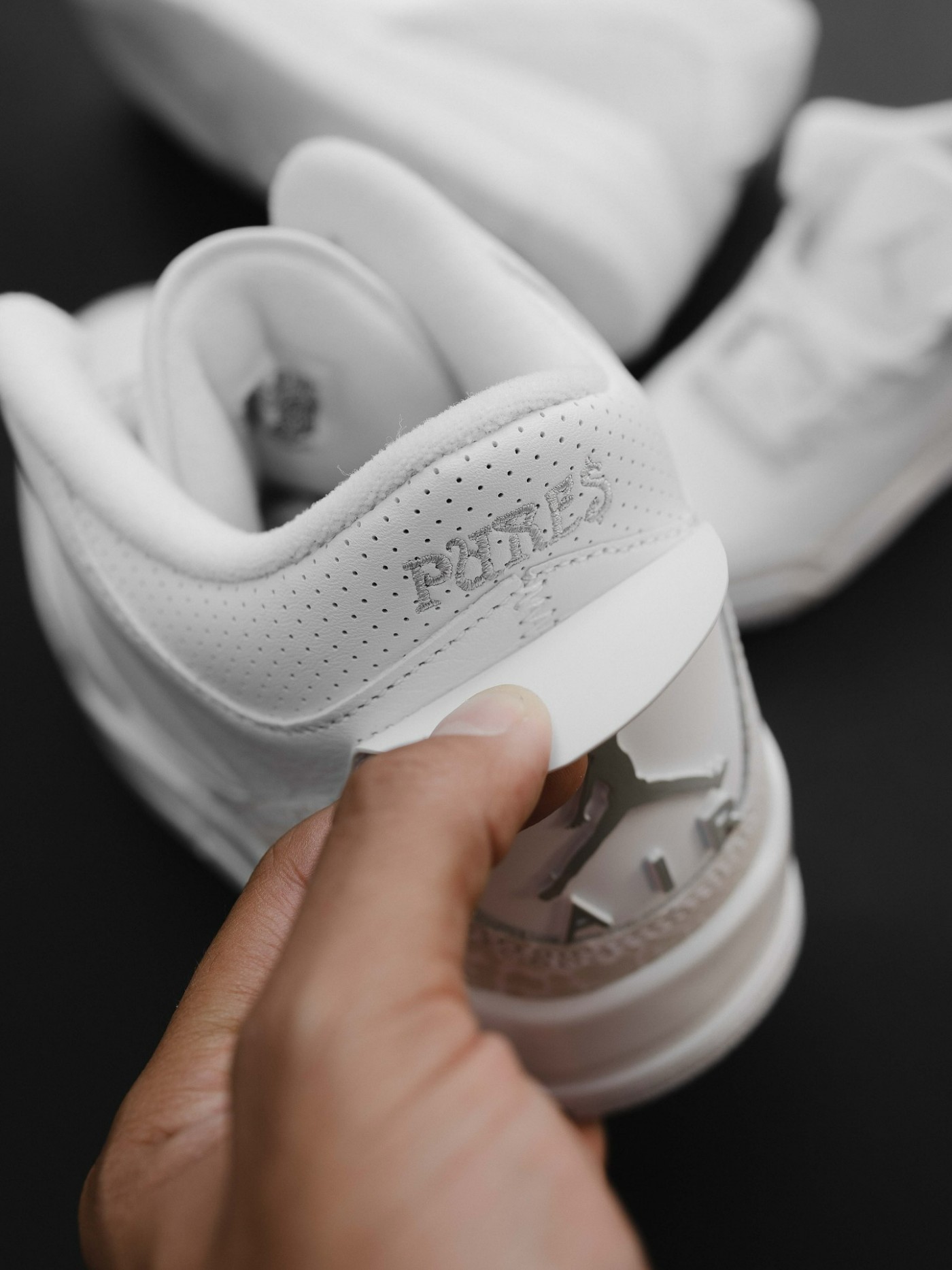 本次复刻保留后跟处标志性的 Pure $ 刺绣,这个细节依然是整双鞋最大的记忆点。