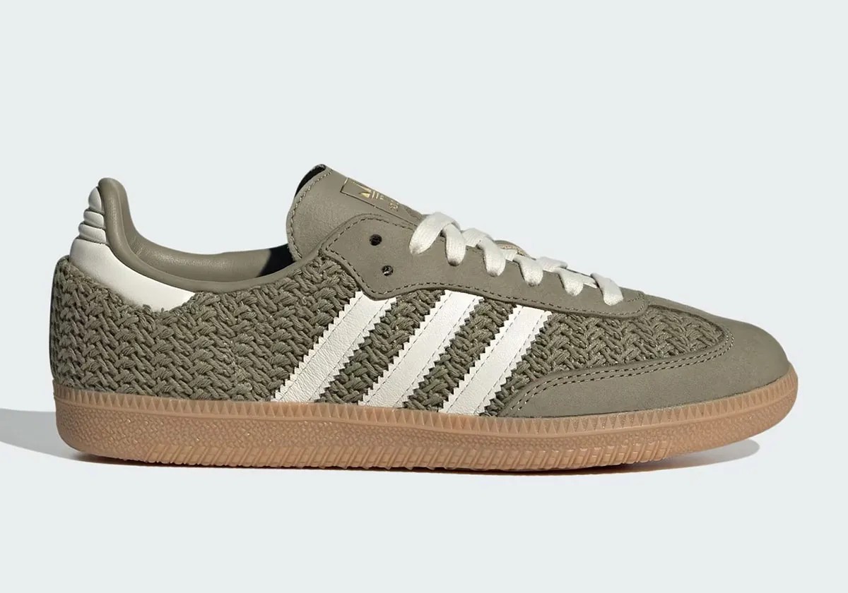 将冠希拿手的编织材质放在更具人气的 Samba 鞋型之上。