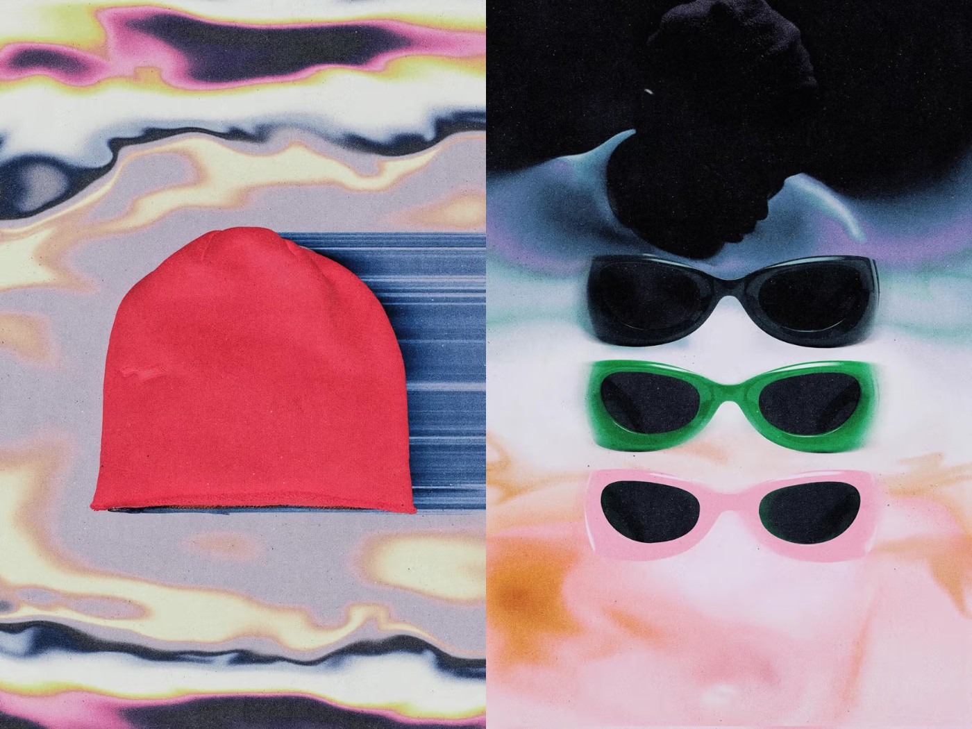 无论是墨镜还是拖鞋单品,在轮廓造型上都别具一格。
