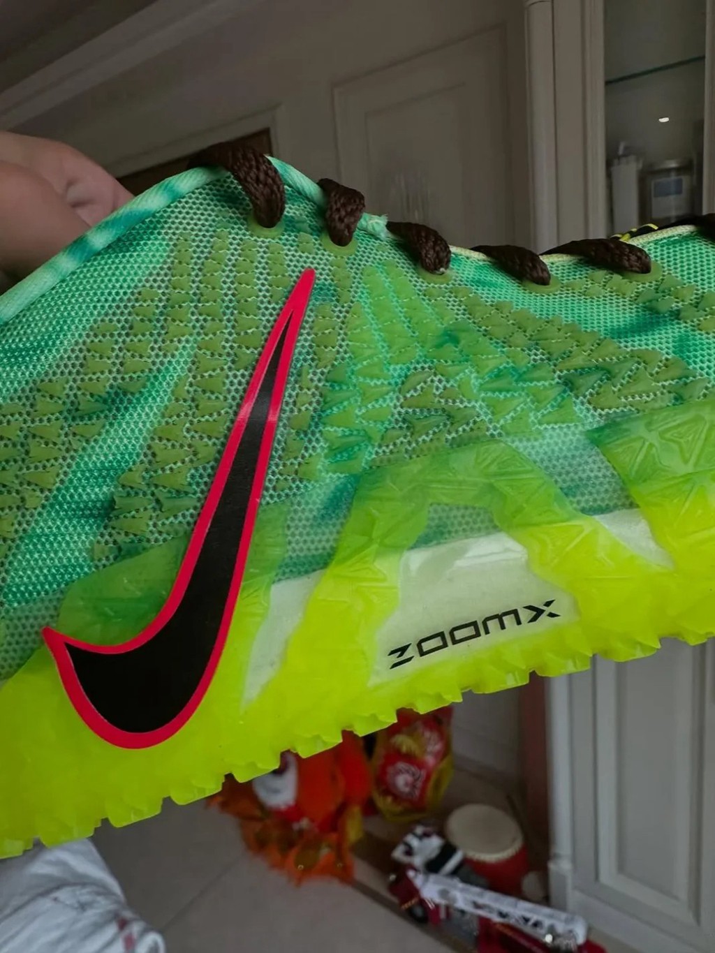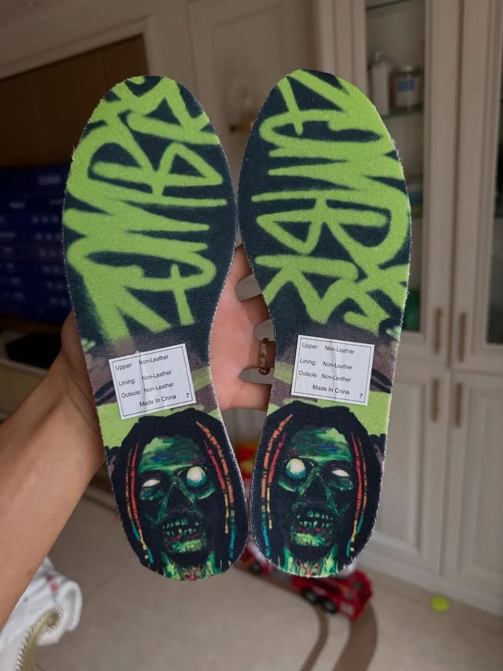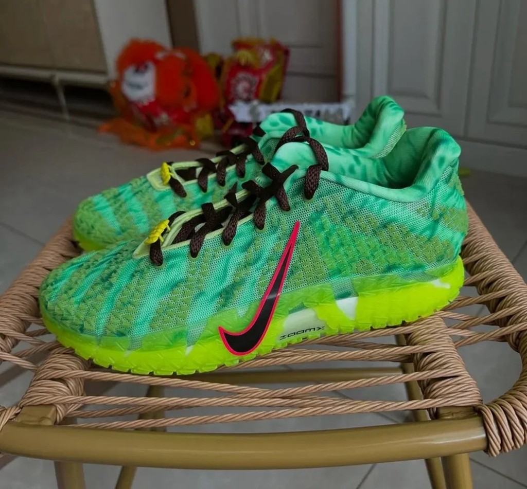 整体以丧尸为灵感,鞋面覆盖万圣节常见的荧光绿色。