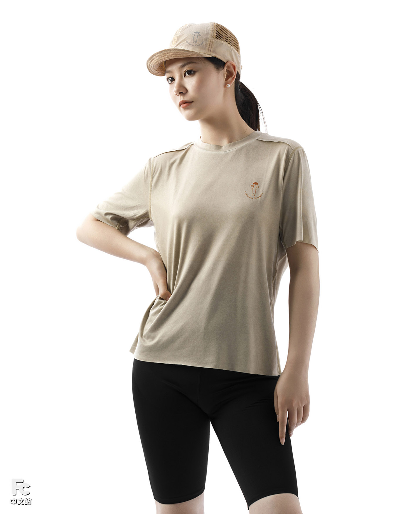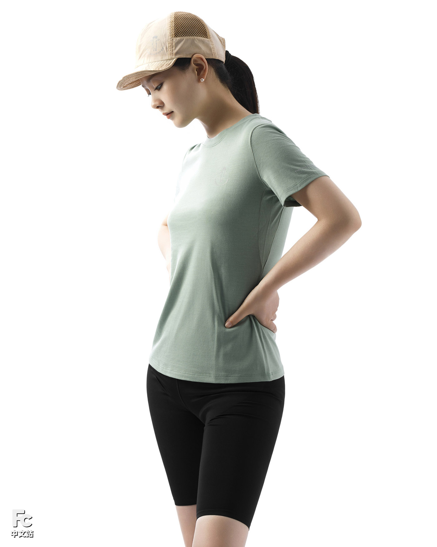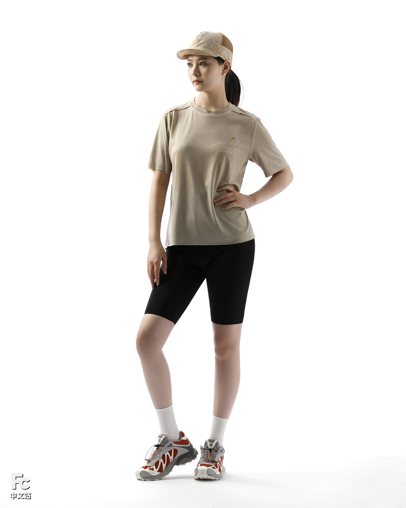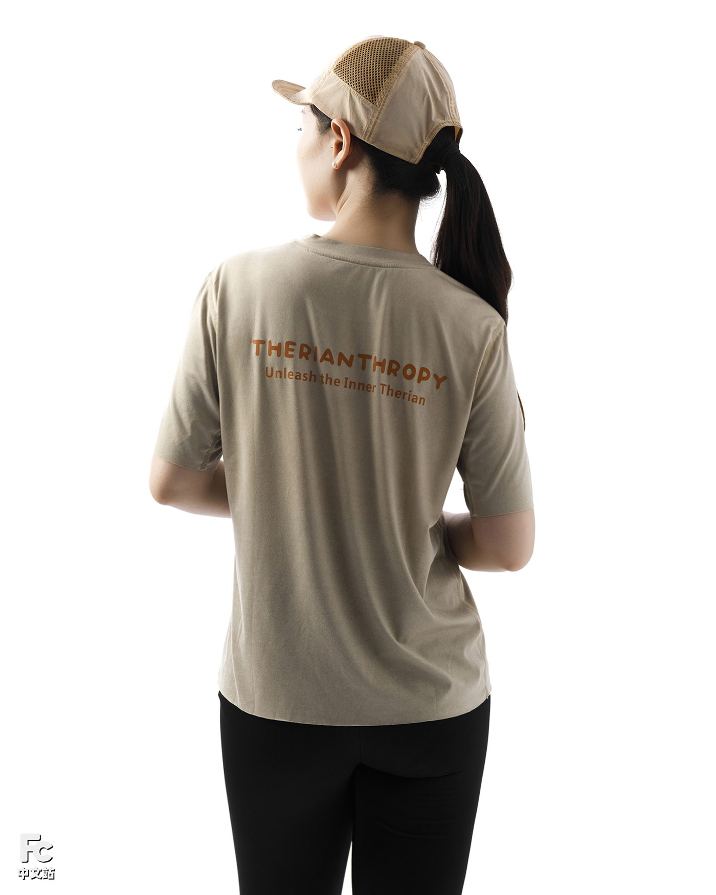 为了应对户外出行的场景,小编选用了来自 THERIANTHROPY 品牌的美利奴羊毛面料的短袖上衣。