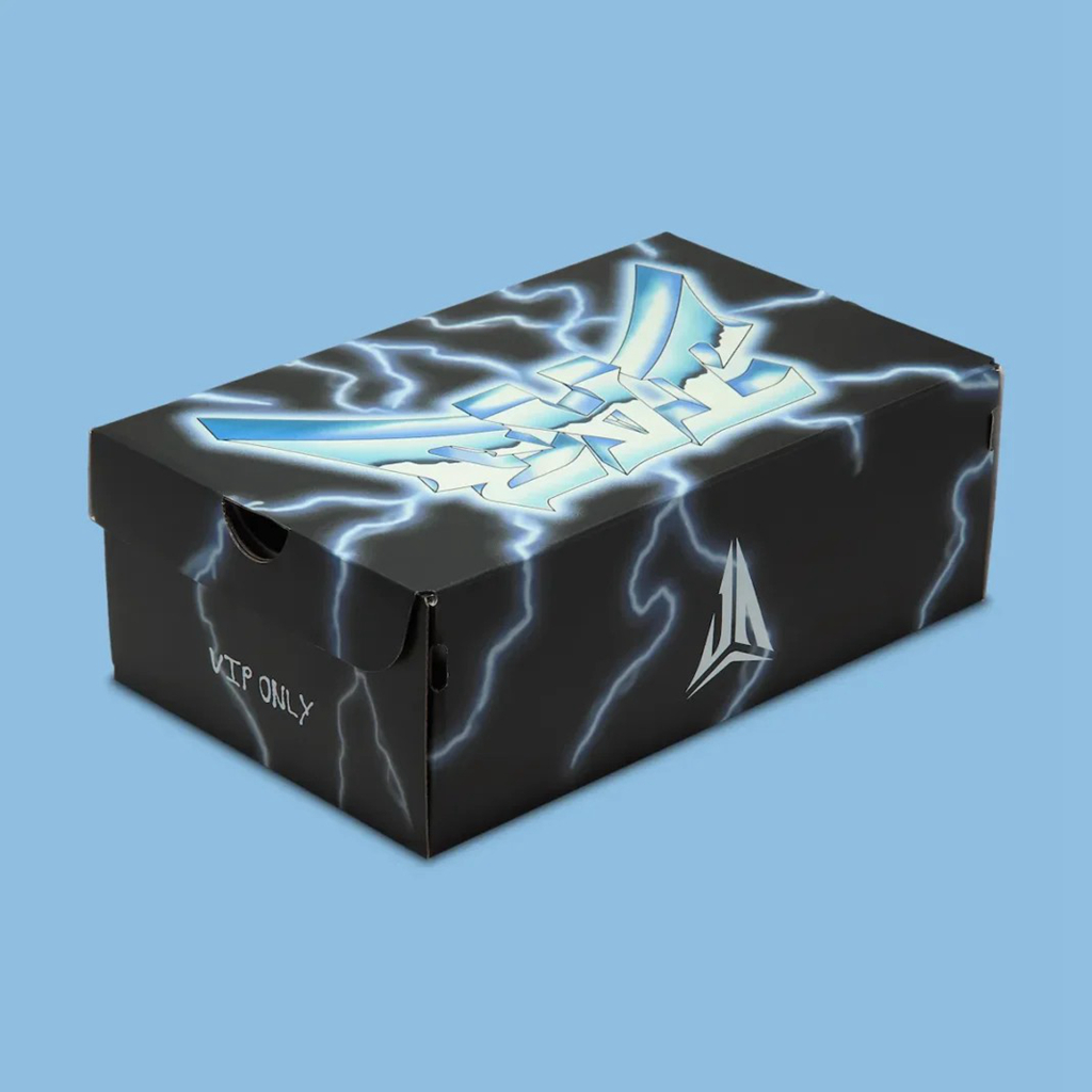 鞋盒也是首次公开,整体外观非常炸裂,符合莫兰特一贯的张扬球风与性格。