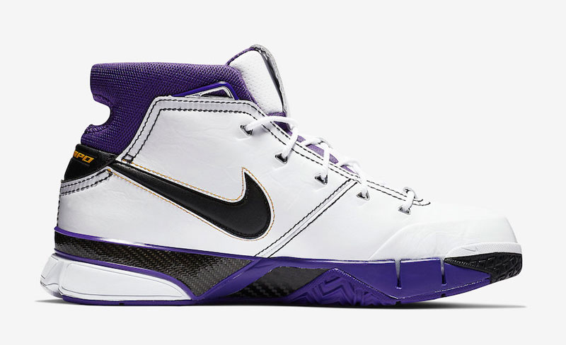 喜欢科比 ZK1 的朋友有福了,为纪念科比在 20 年前,对阵多伦多猛龙队的比赛中取得 81 分的奇迹之夜,当时赛场上脚的白紫 Zoom Kobe 1 也被玩家们称为 81 分配色,将于明年再度复刻回归!