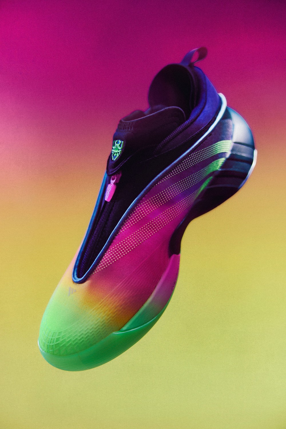 醒目渐变配色搭配鞋面蜘蛛网、波点的暗藏纹理,加之独特的拉链设定,既有着极高的辨识度,同时也能更好包裹双脚,颜值与性能兼具。