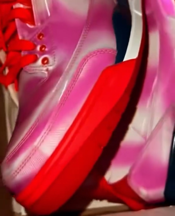 采用透镜状鞋面,会根据视角改变而发生颜色变化,加之白粉撞色,极为骚气。