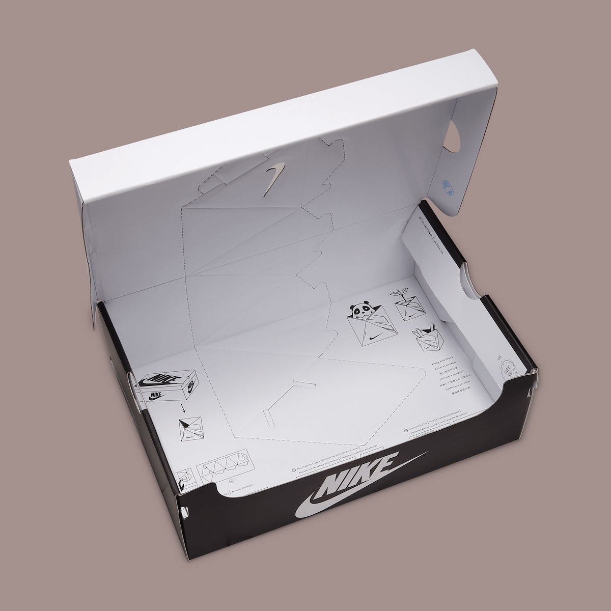 为其配备了特殊鞋盒,并以黑白配色呈现。按照步骤操作,看样子能折成收纳盒。