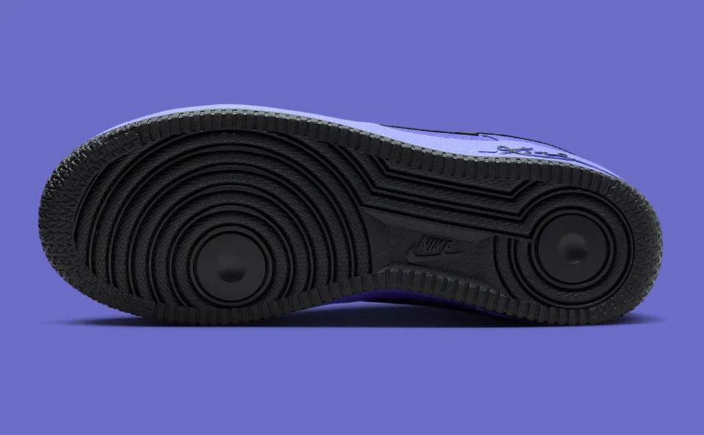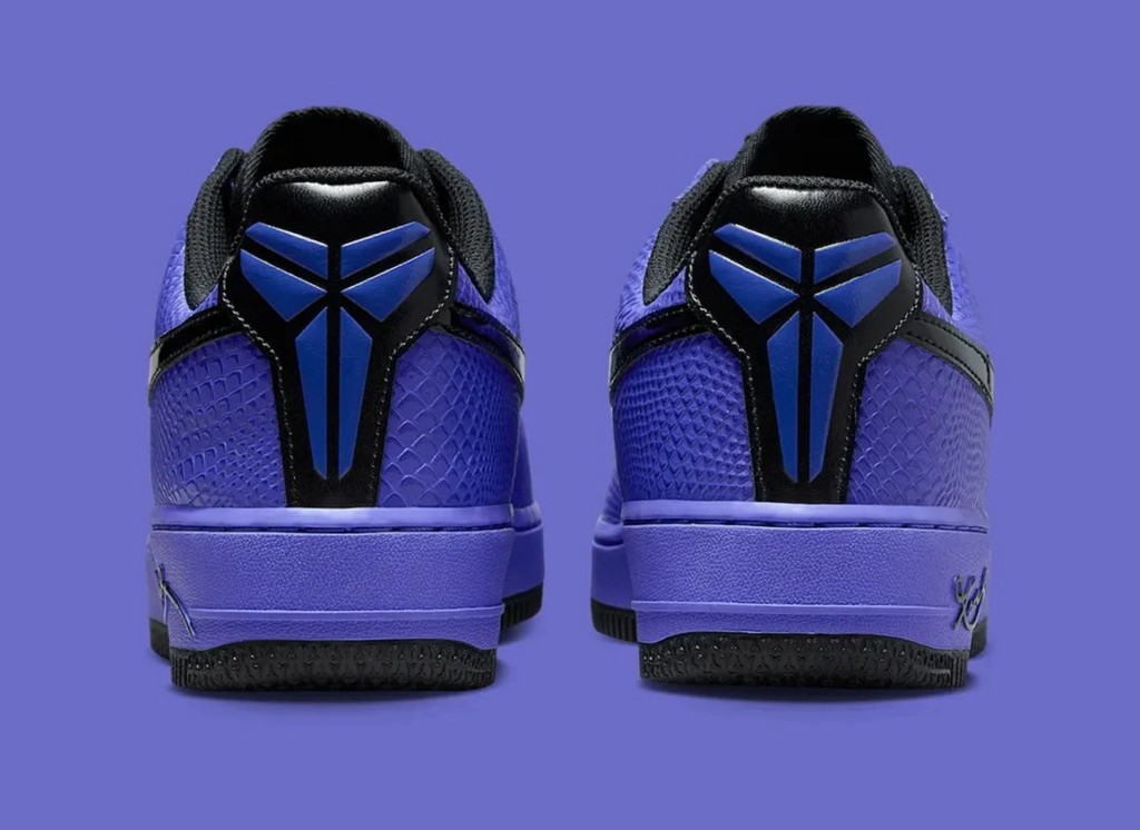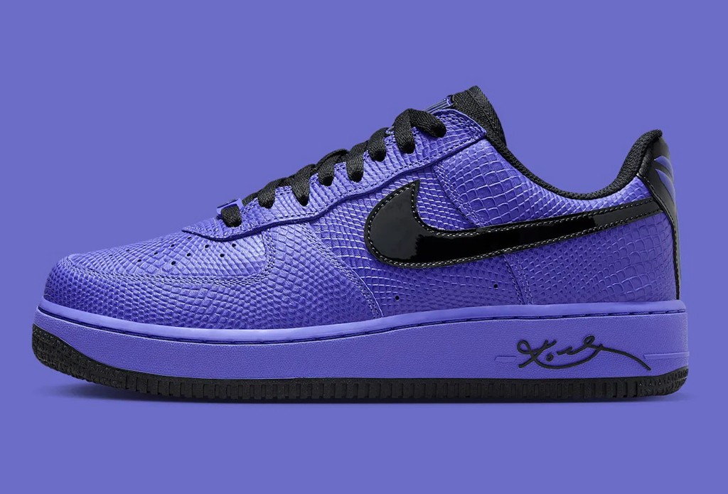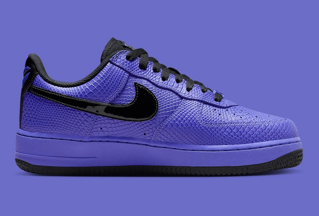 另一双 Air Force 1 Low 也颇具特色,选用球衣同款紫色覆盖,搭配满印蛇鳞,带来吸睛效果。