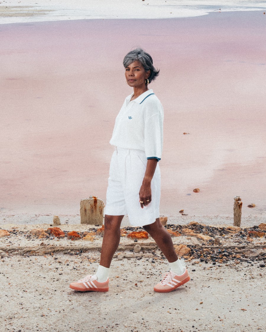 鞋身以亮粉色为主调,灵感来源于当地著名的盐田,以及因嗜盐微生物而呈现粉红色的自然奇观。