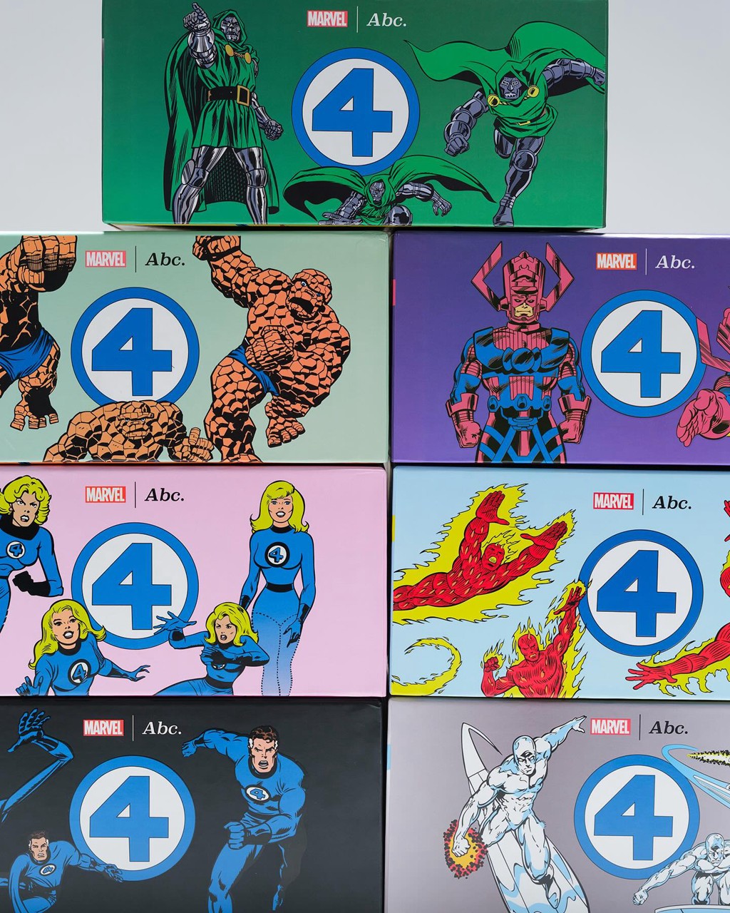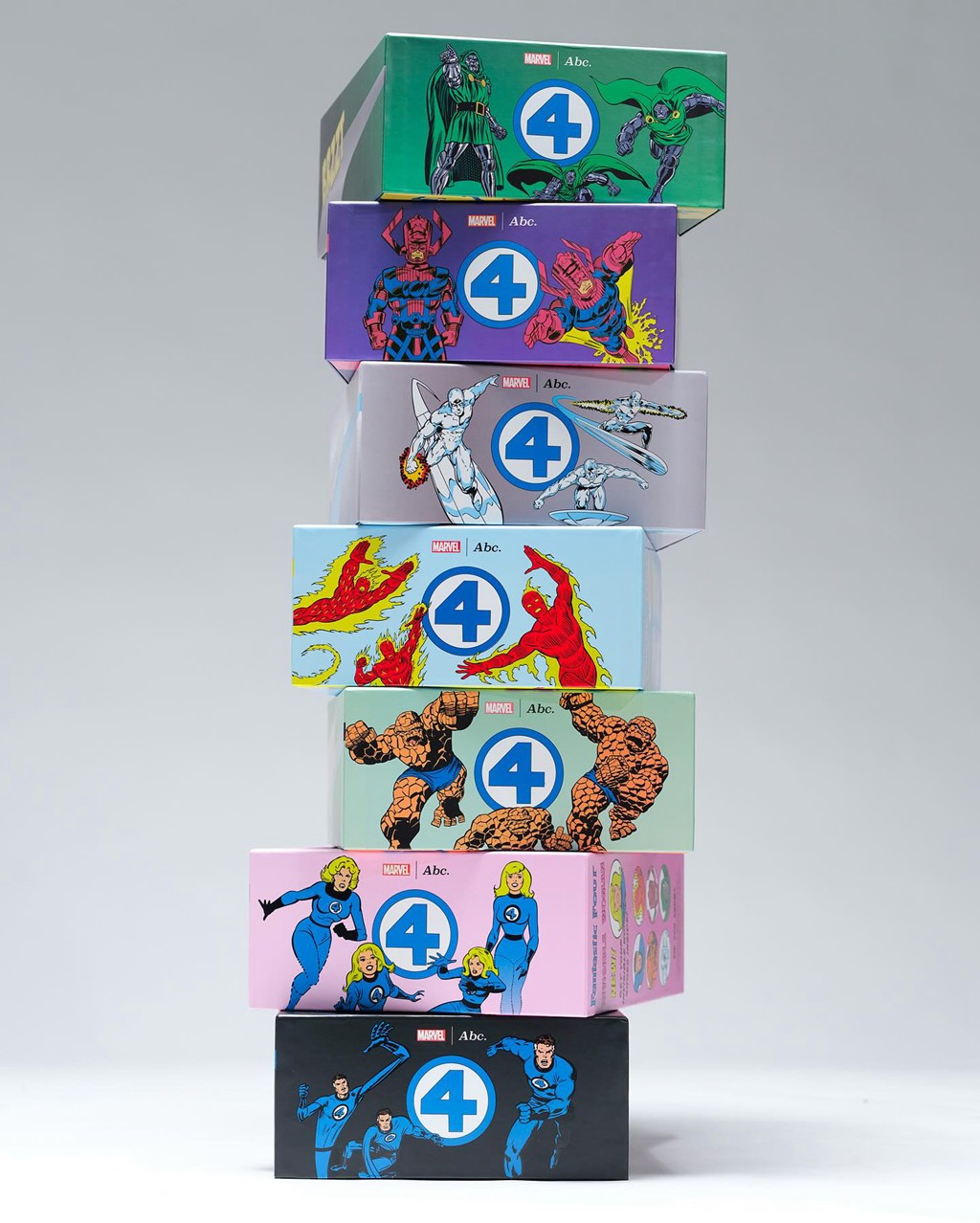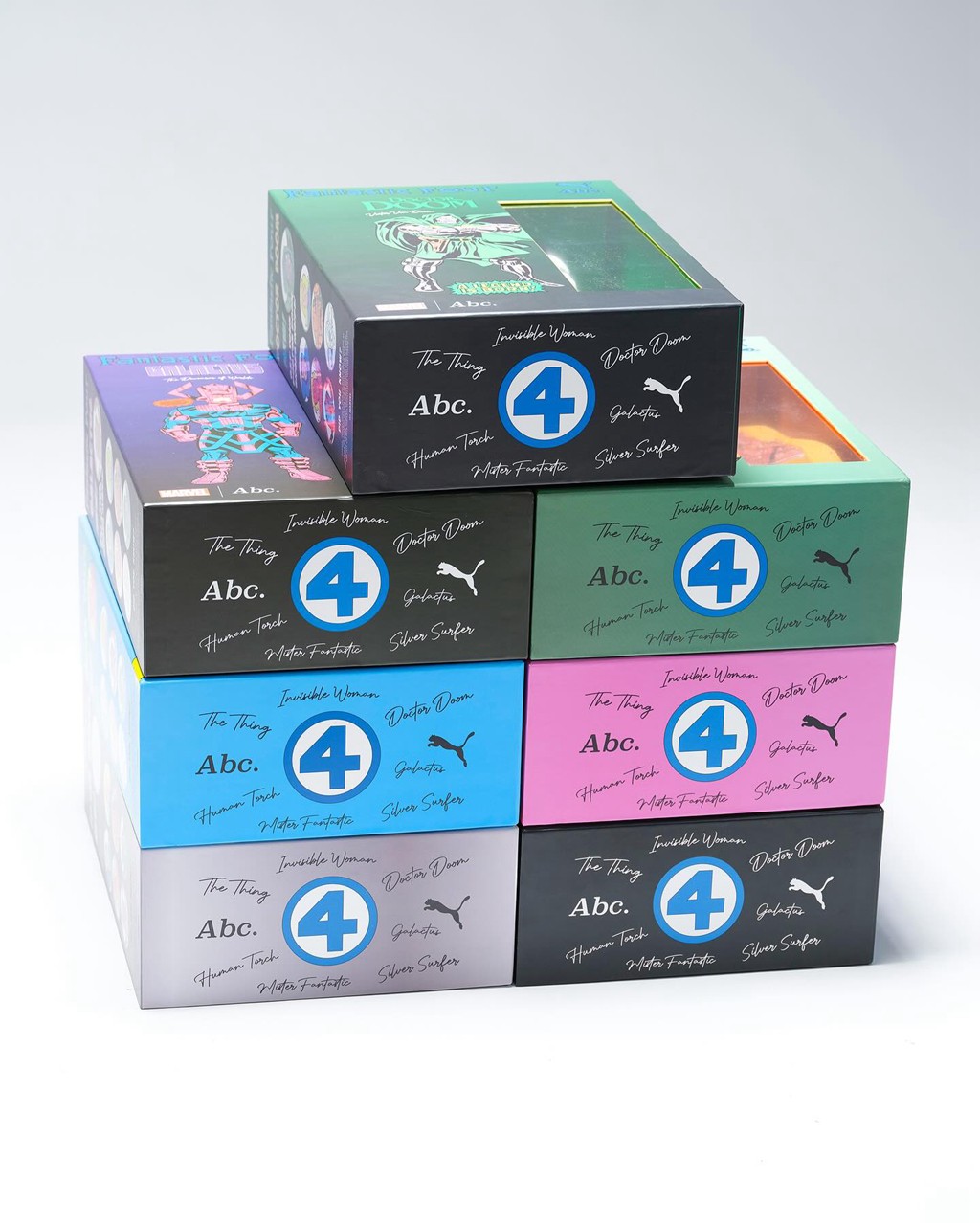 此次联名包含足足 7 双鞋,除了神奇四侠外,还有吞星者、毁灭博士、银影侠三位经典反派。