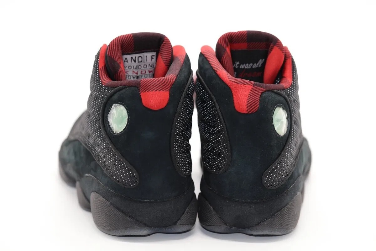 这双鞋远看上去就是很普通的黑红 Air Jordan 13,但是近赏之下,会发现暗藏了非常丰富的细节。