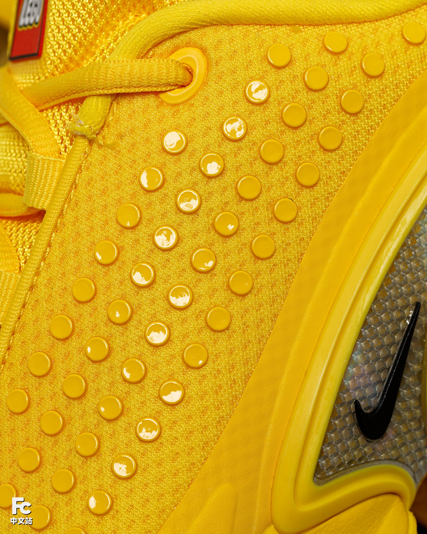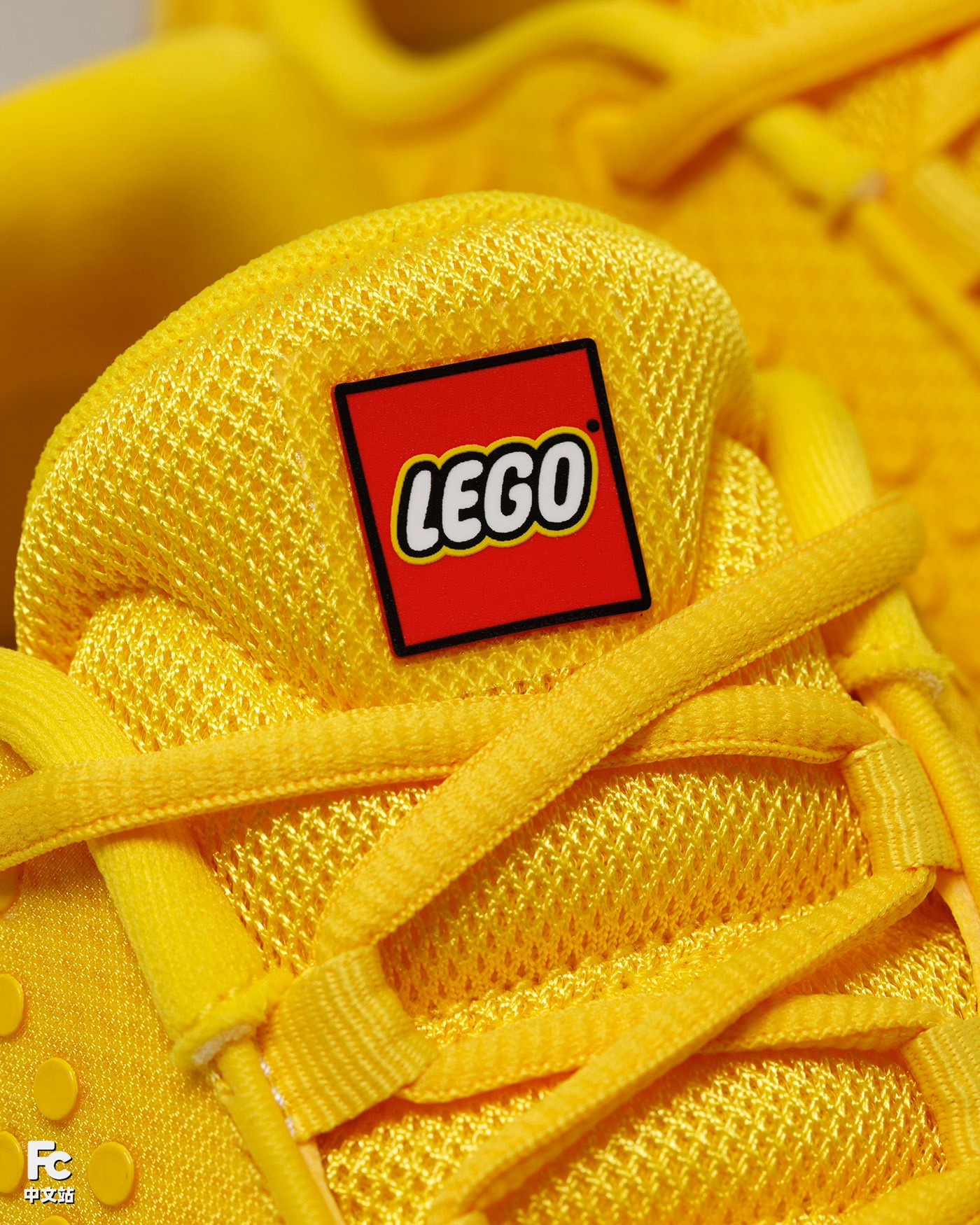 而最大的亮点在于鞋面模拟了 LEGO 颗粒的造型,这样的质感氛围,同手上的 LEGO 玩具同出一辙。