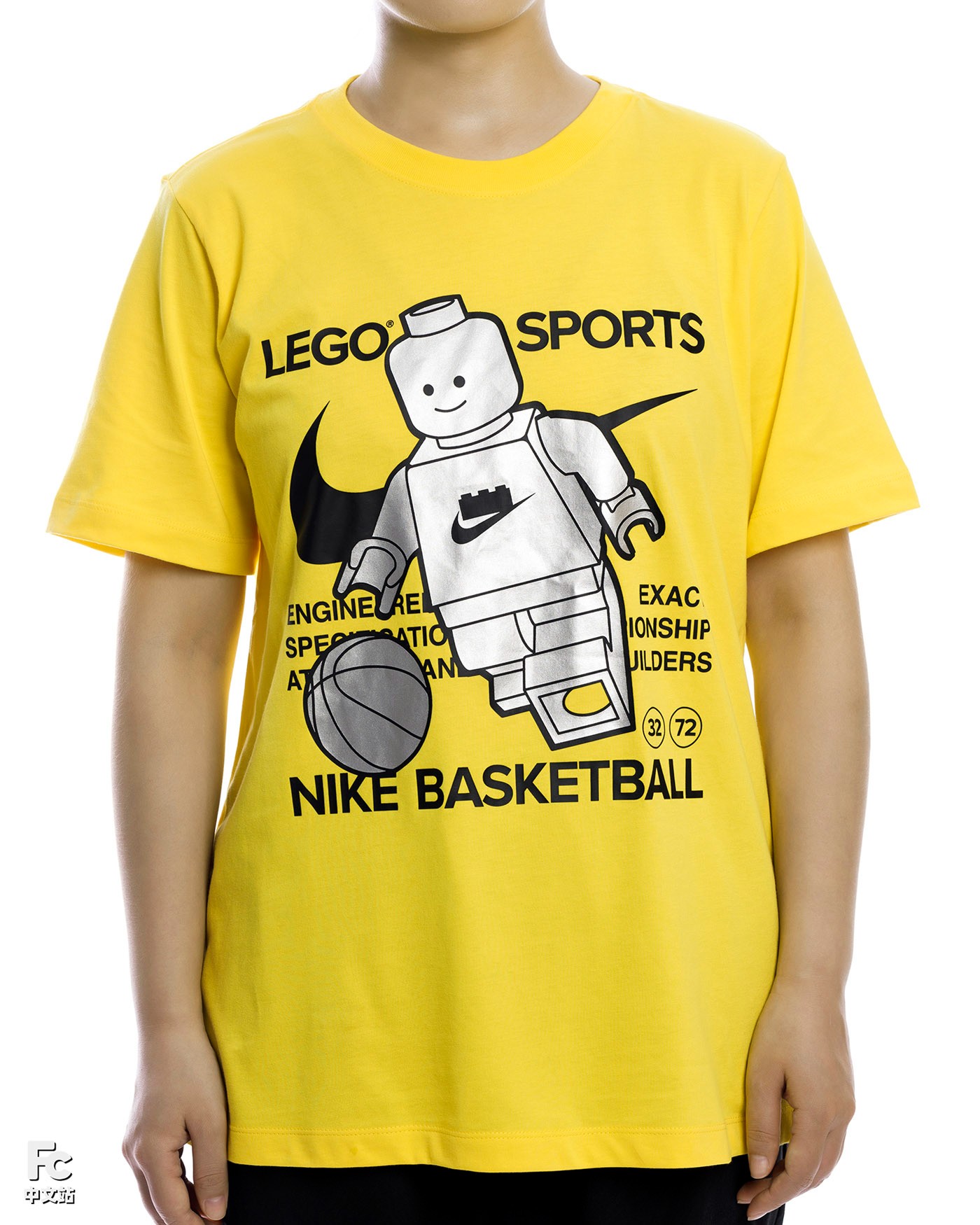 另外本次还有一件联名 T 恤,以标志色黄色打底,呈现了 LEGO 小人打篮球的图案。