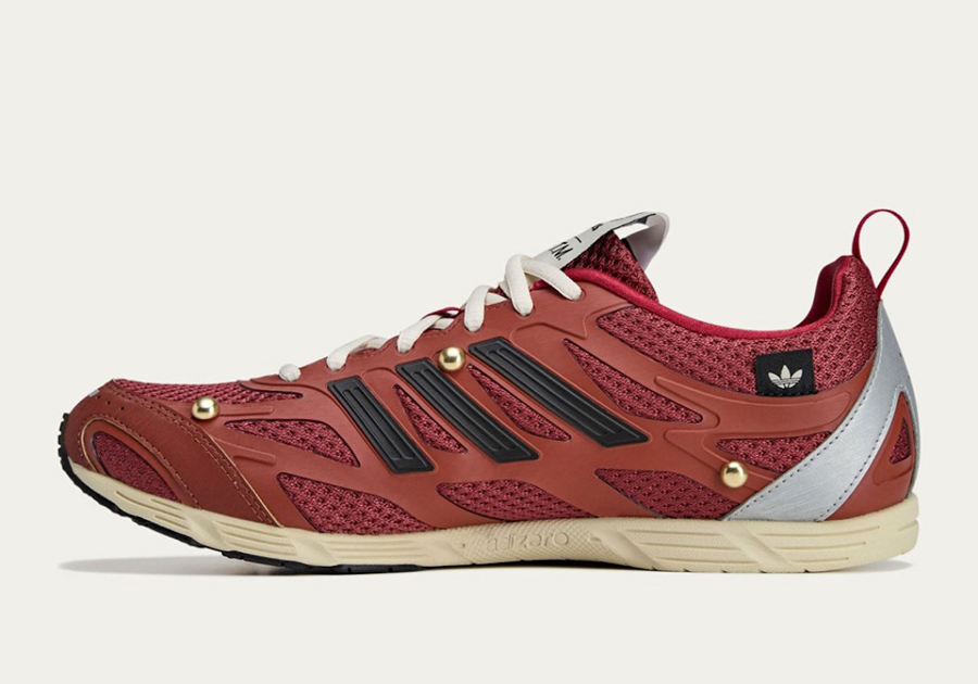 adizero PR 在保留薄底竞速鞋款的原有基因外,注入金属圆钉装饰,释放街头的叛逆潮流气质。