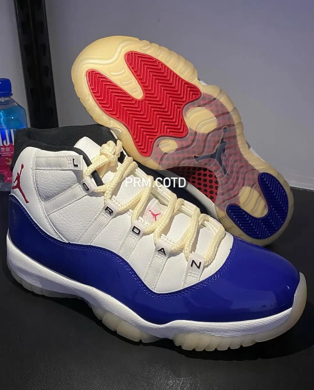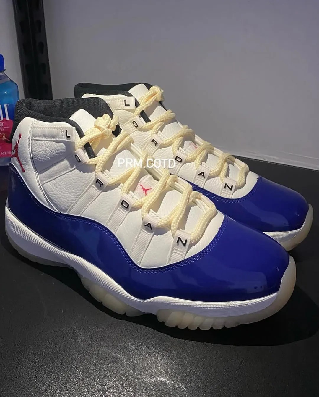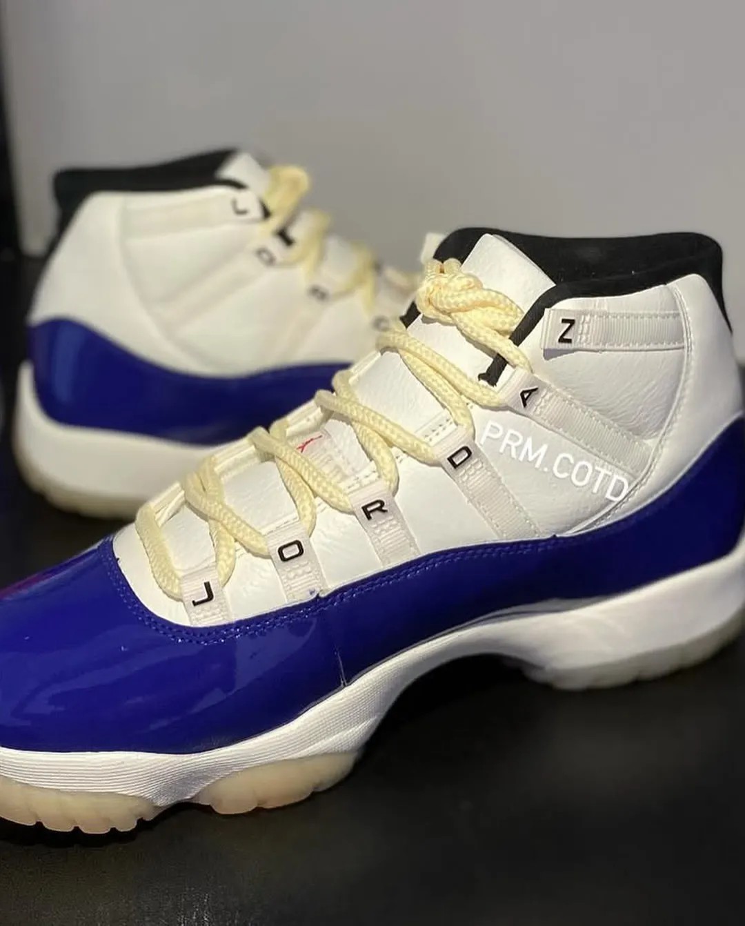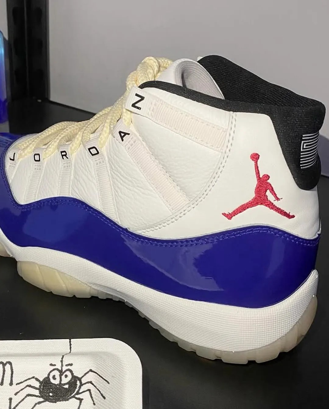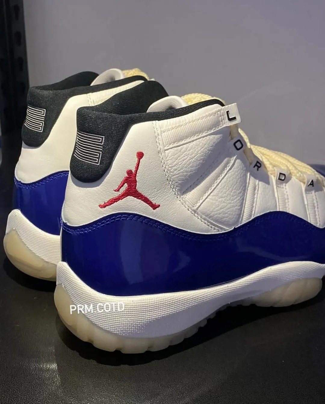 鞋带扣装饰有 JORDAN 组成的字样,区别于大多数 Air Jordan 11。