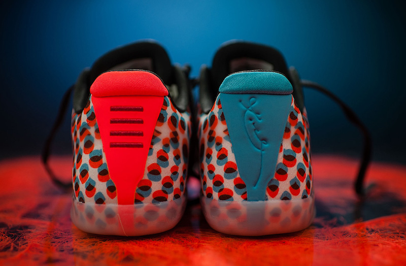 科比还曾在「柯南秀」上特别展示,独特红蓝鸳鸯细节与鞋面的目眩效果,都令人印象深刻。