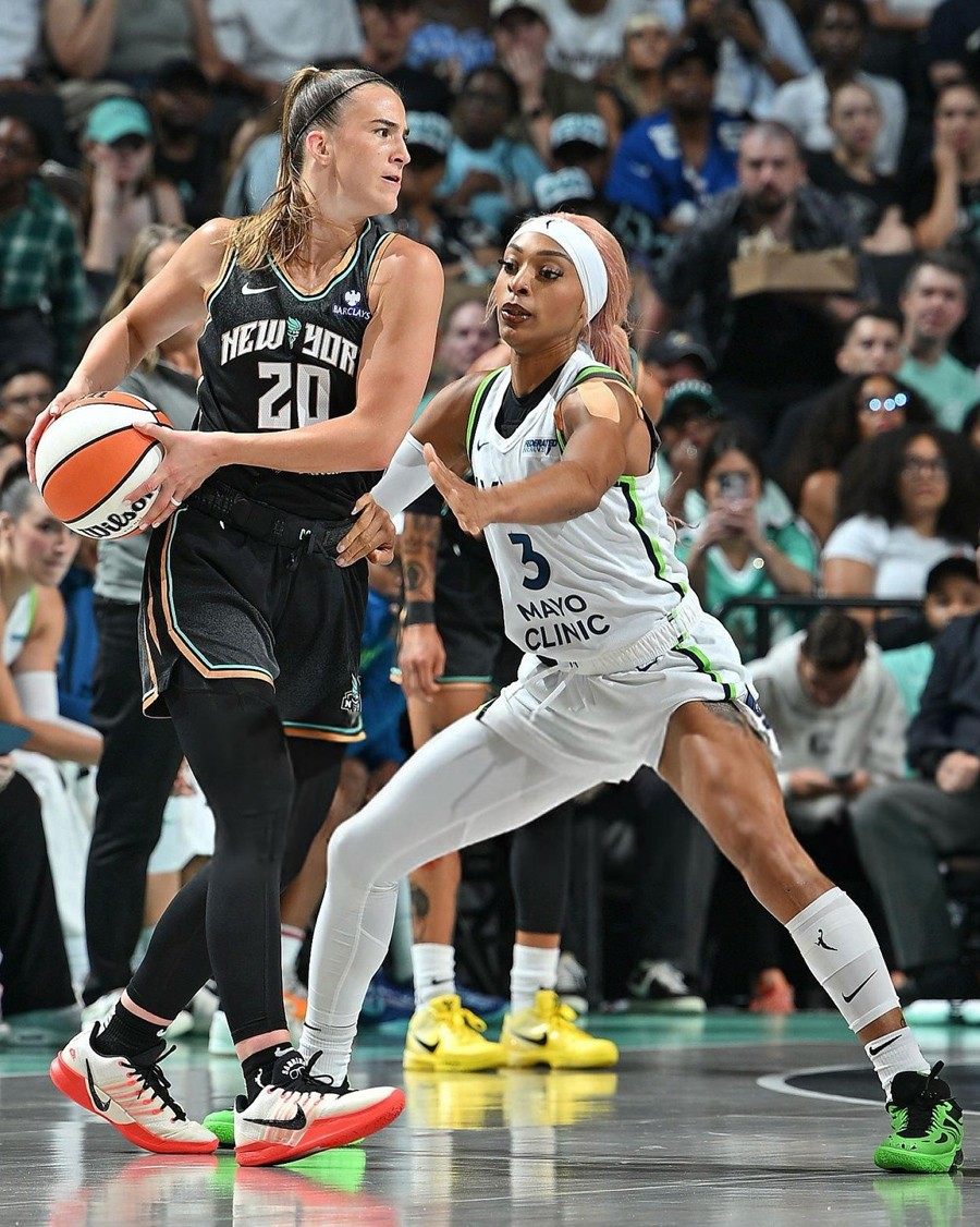 以往 Nike Sabrina 系列就是官方定制的人气选择,在近日 NYvsNY 比赛中,球员们就上脚了多款定制配色,非常吸睛。