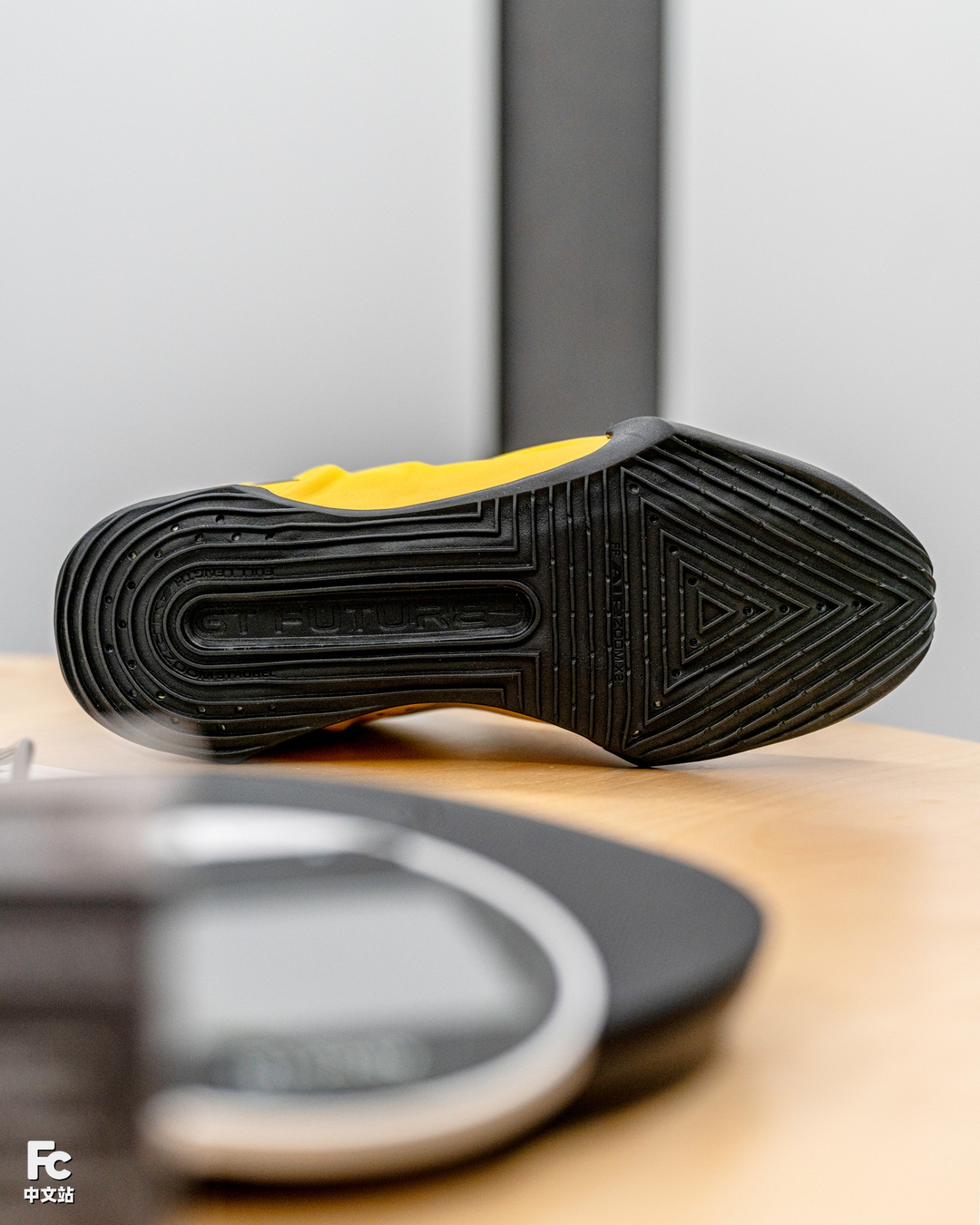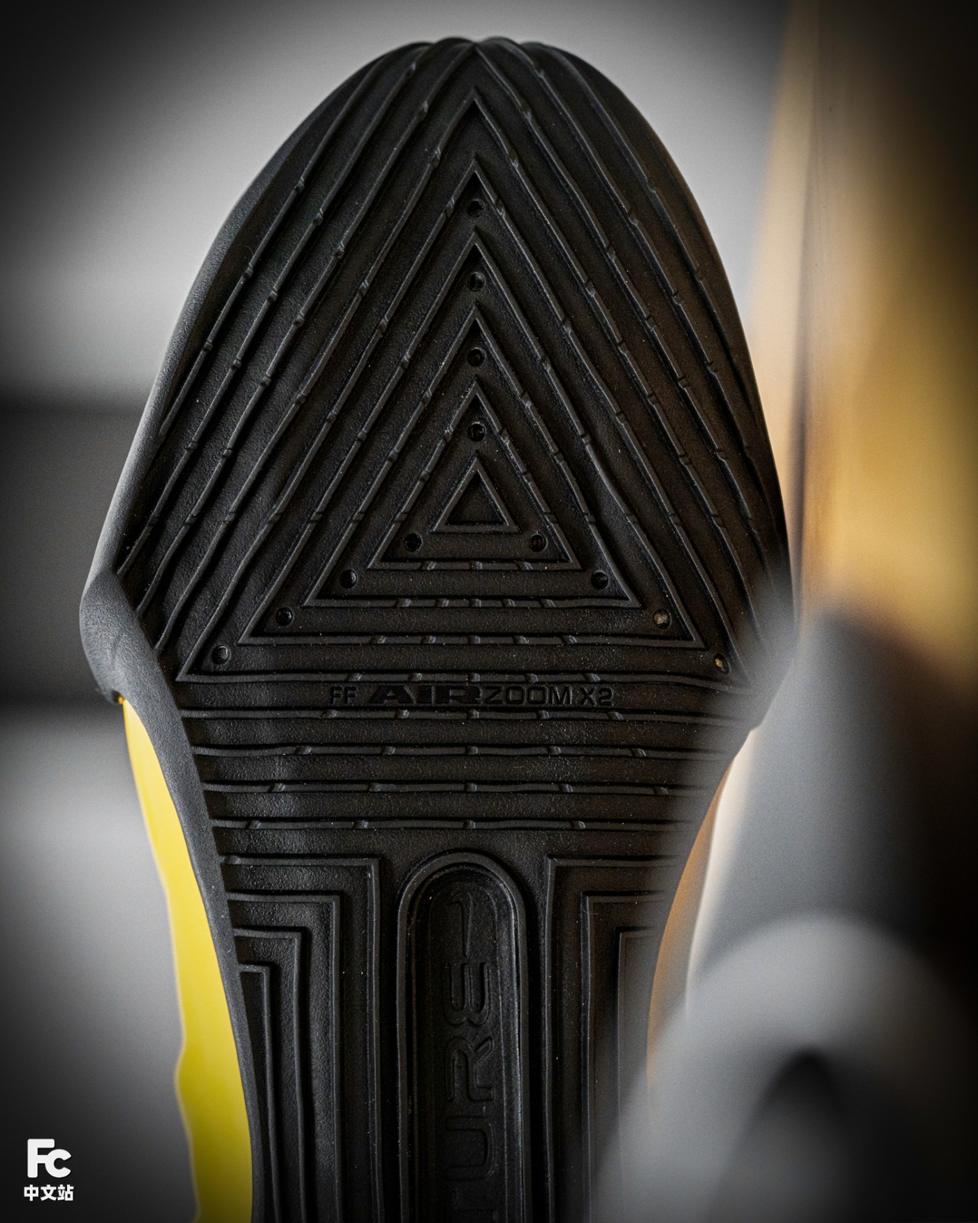 三就是关键的中底缓震配置,从前掌外底纹理中,可以发现「FF AIR Zoom x 2」的图标。