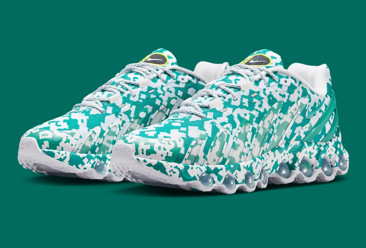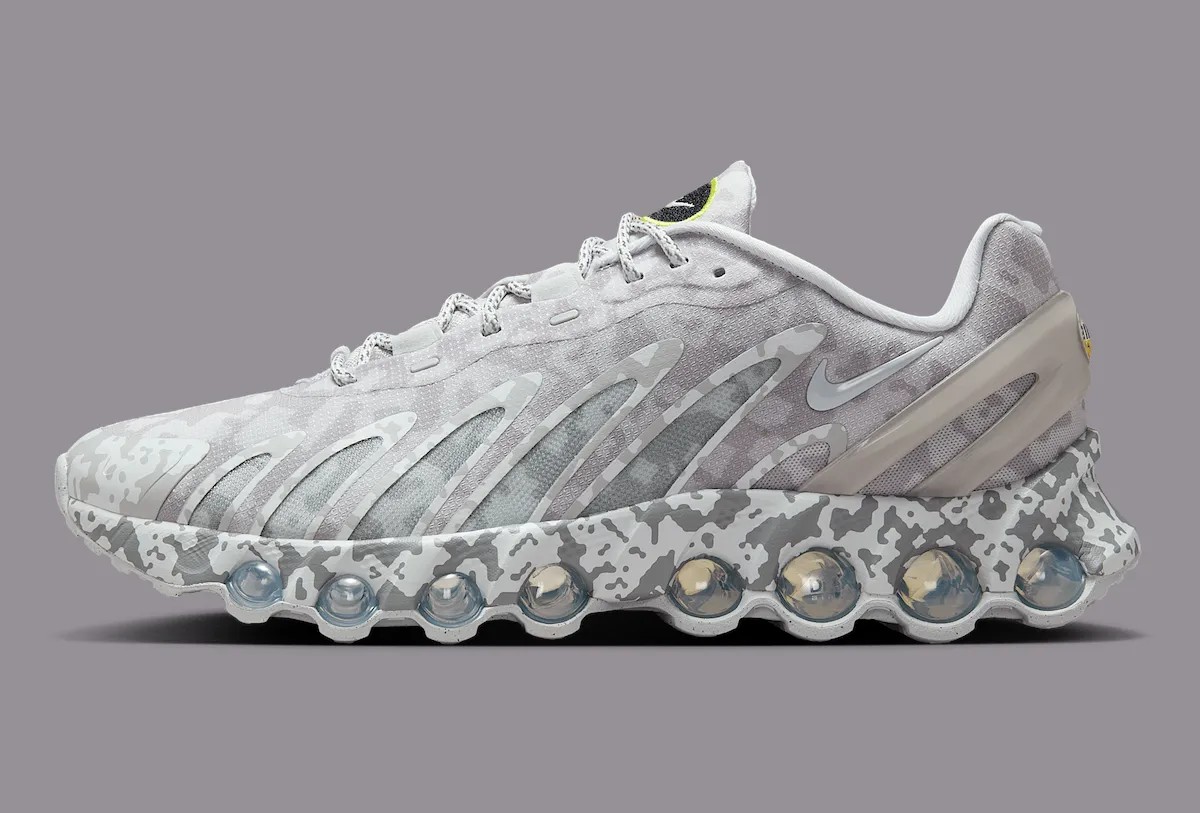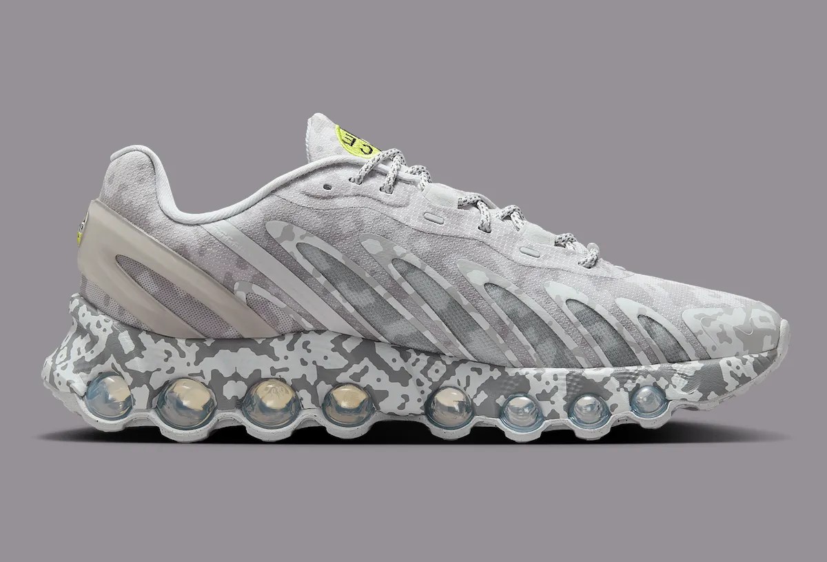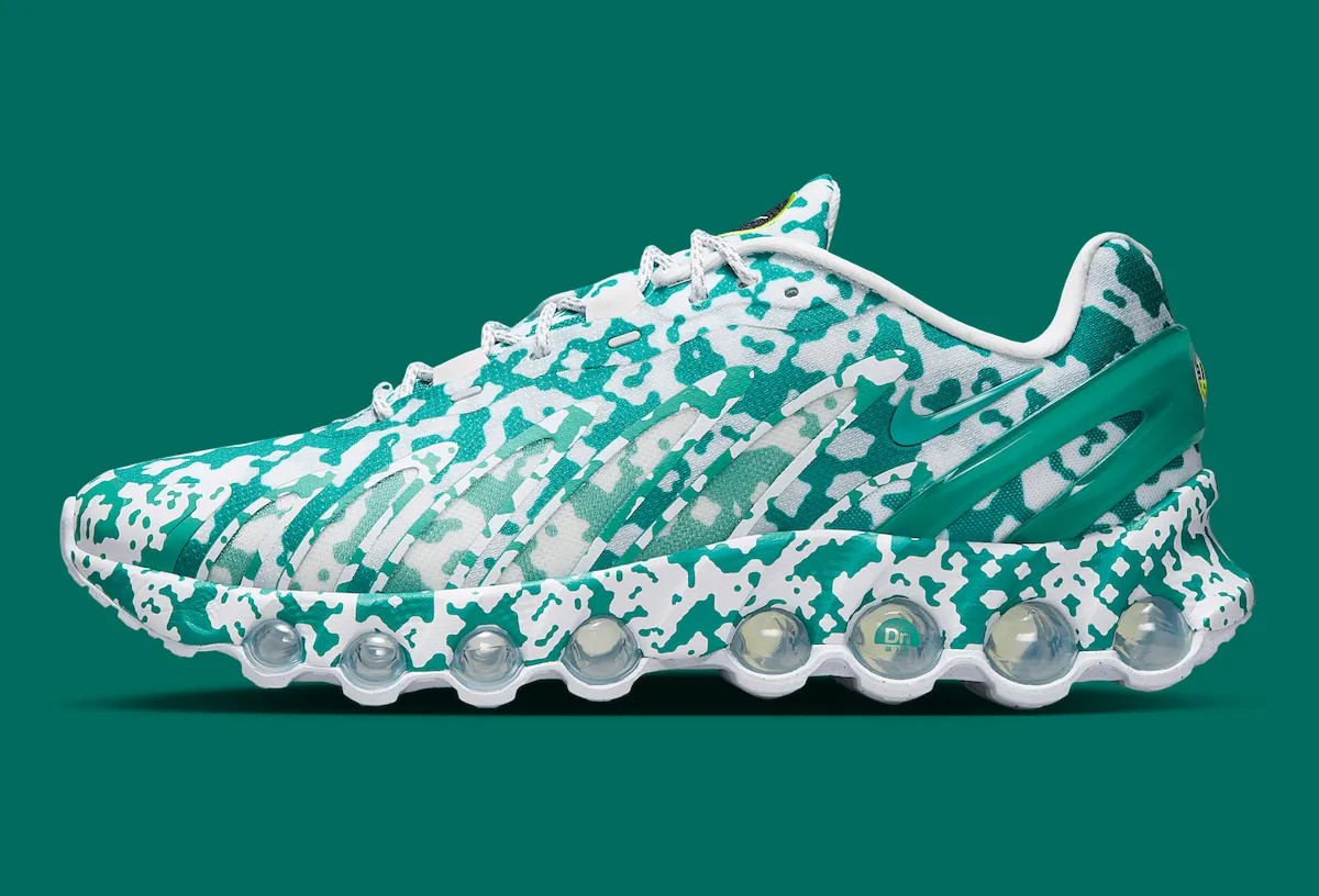 通体迷彩的处理类似于 2019 年的 Air Max 95 合作,但 DN8 的鞋型更具未来感,看上去更有赛博朋克美学。