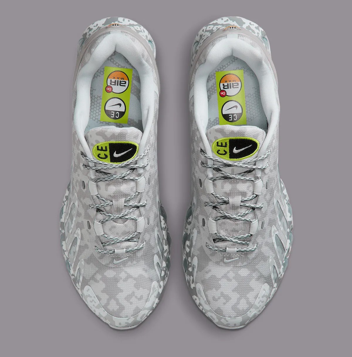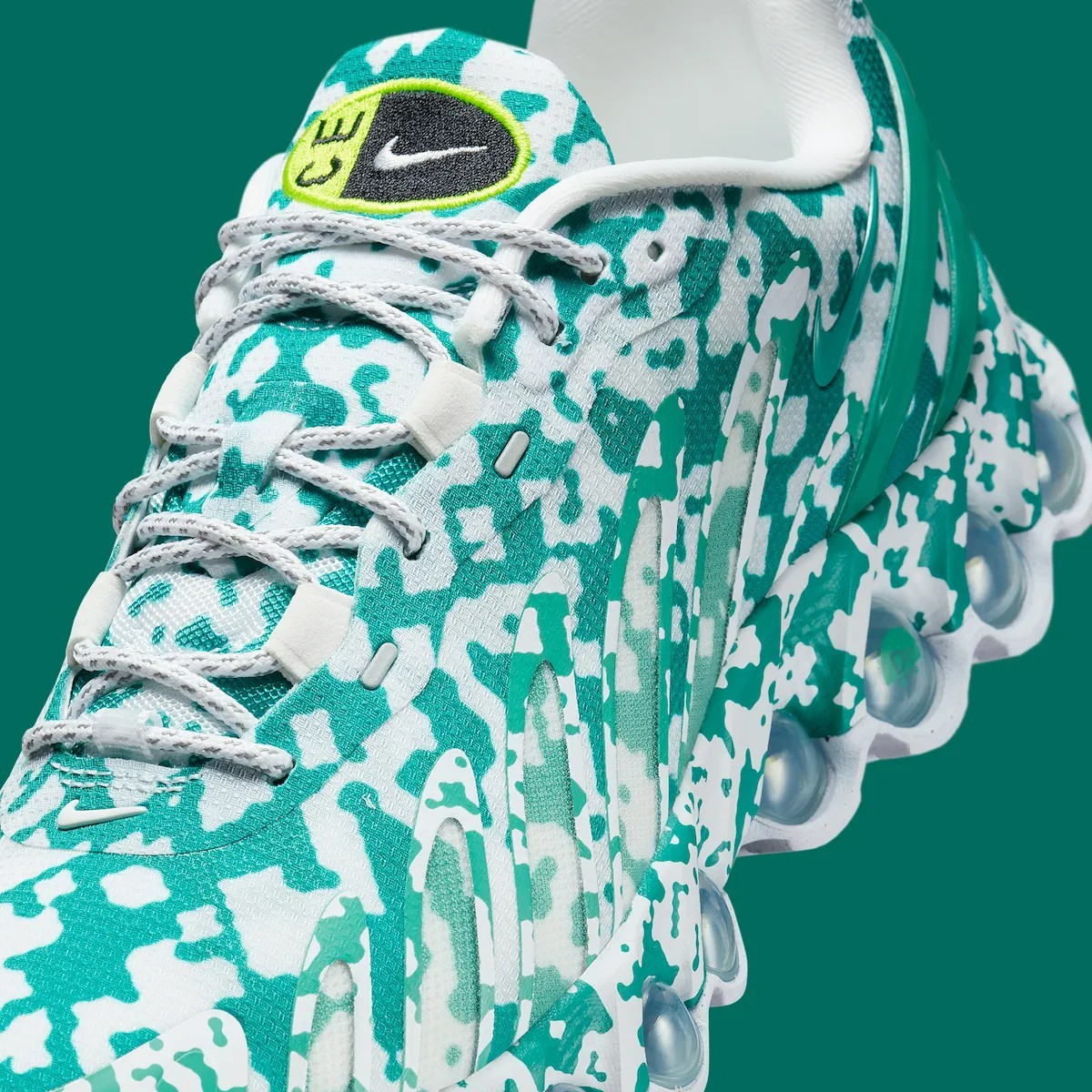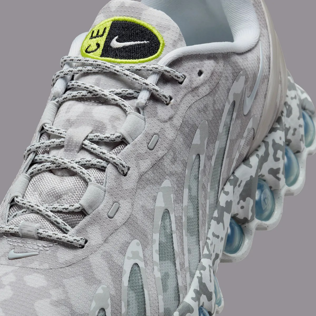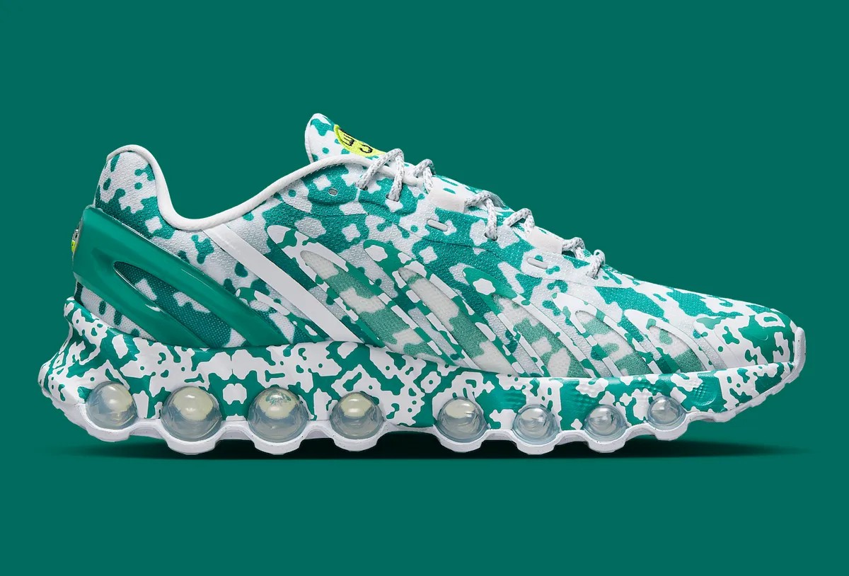 通体迷彩的处理类似于 2019 年的 Air Max 95 合作,但 DN8 的鞋型更具未来感,看上去更有赛博朋克美学。