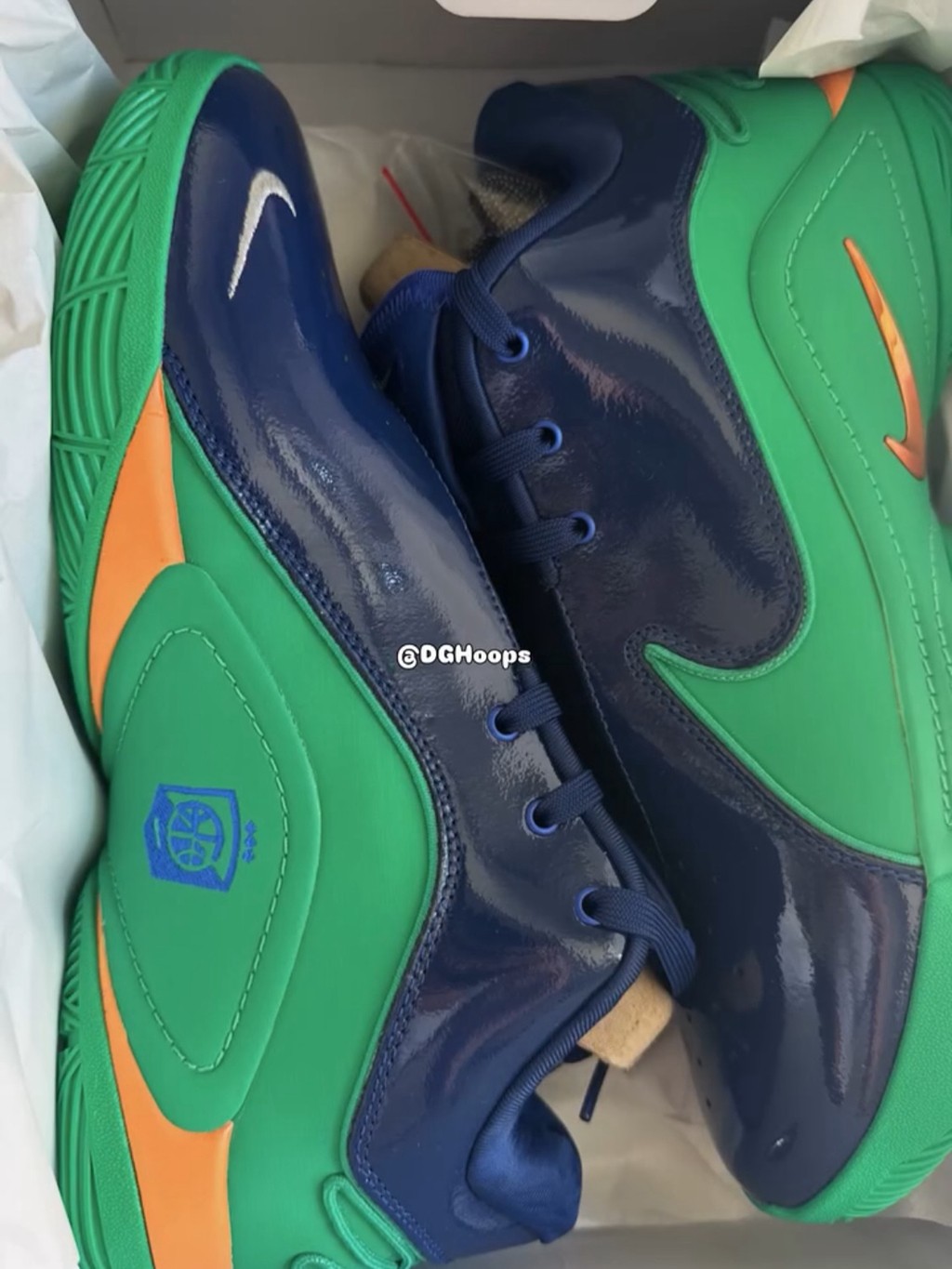 最近 Nike EYBL 联赛进行中,限定战靴纷纷亮相。 此前刚刚跟大家分享过 Kobe 5 Protro,下一双这就来了! 这次轮到了 Nike LeBron 22,一起来看看颜值表现如何。 配色方面,这次的 EYBL 系列似乎都是以蓝、绿为主视觉。 蓝色漆皮搭配绿色 Swoosh 和中底,倒是很适合炎热夏季。 中底内侧依旧有配色专属图案,这次直接是 EYBL 的新 Logo。 目前暂无市售消息,恐怕又将成为球鞋收藏家们的目标。 Pic via:dghoops
