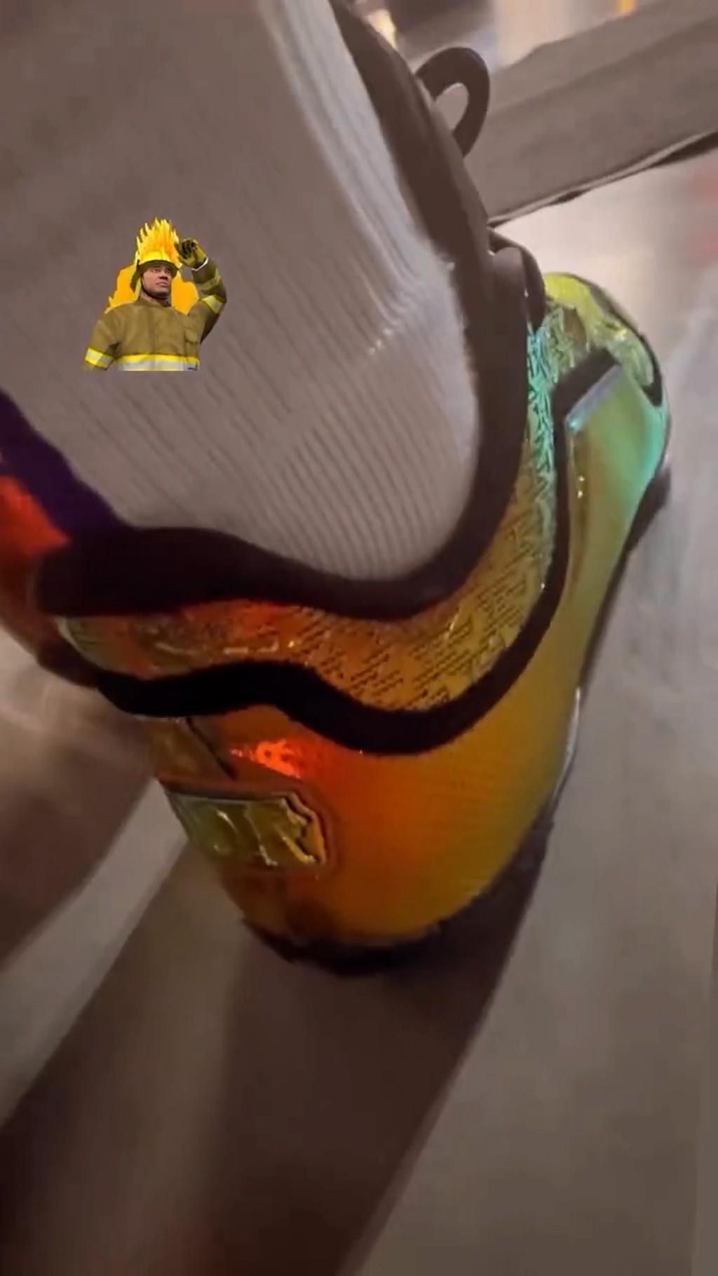 这双以奥运同款黄金炫彩材质覆盖,不同角度下显得闪闪发光,奢华至极。