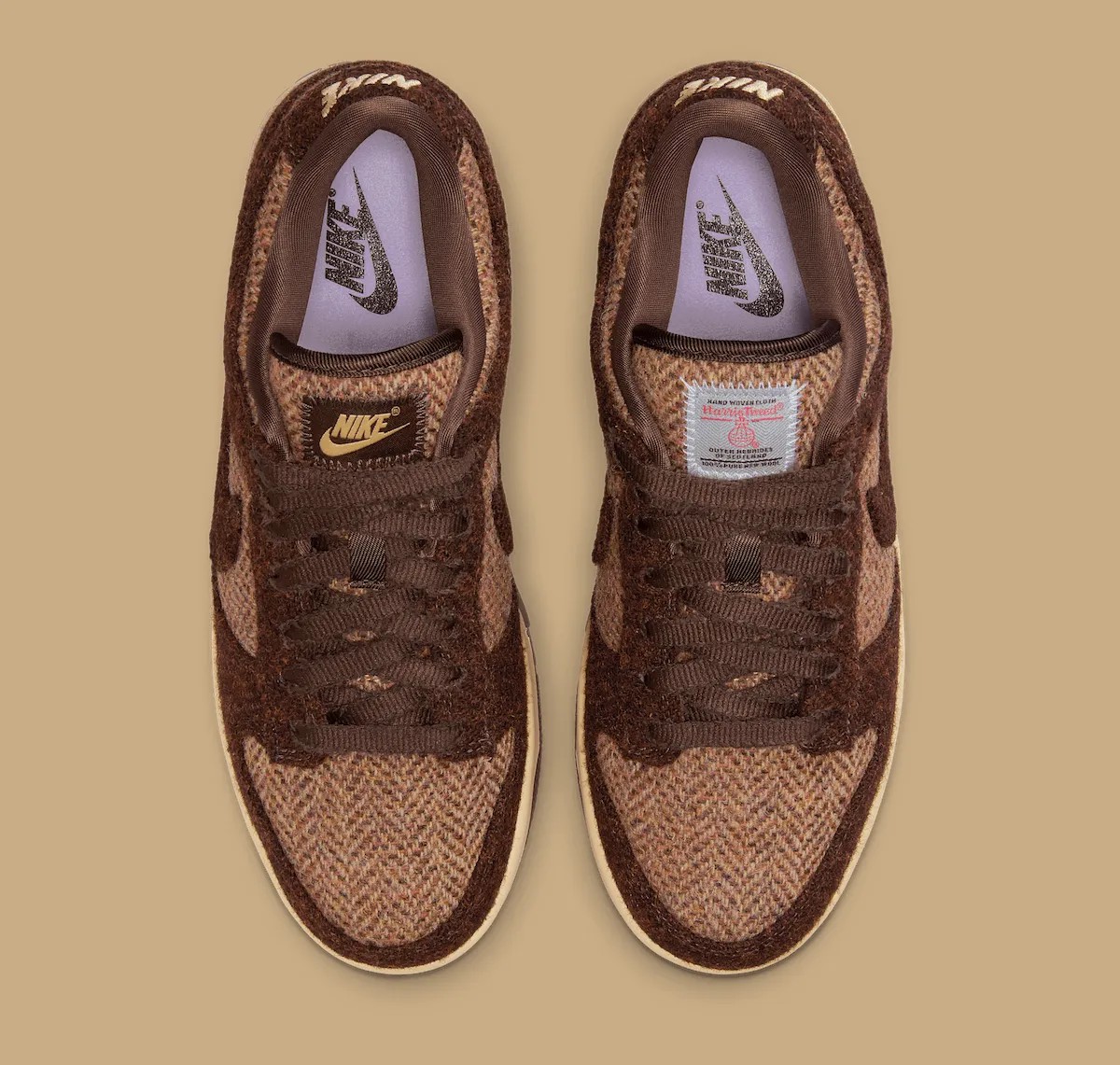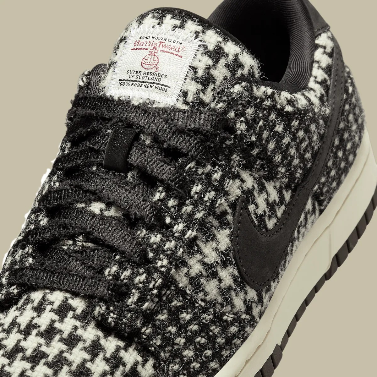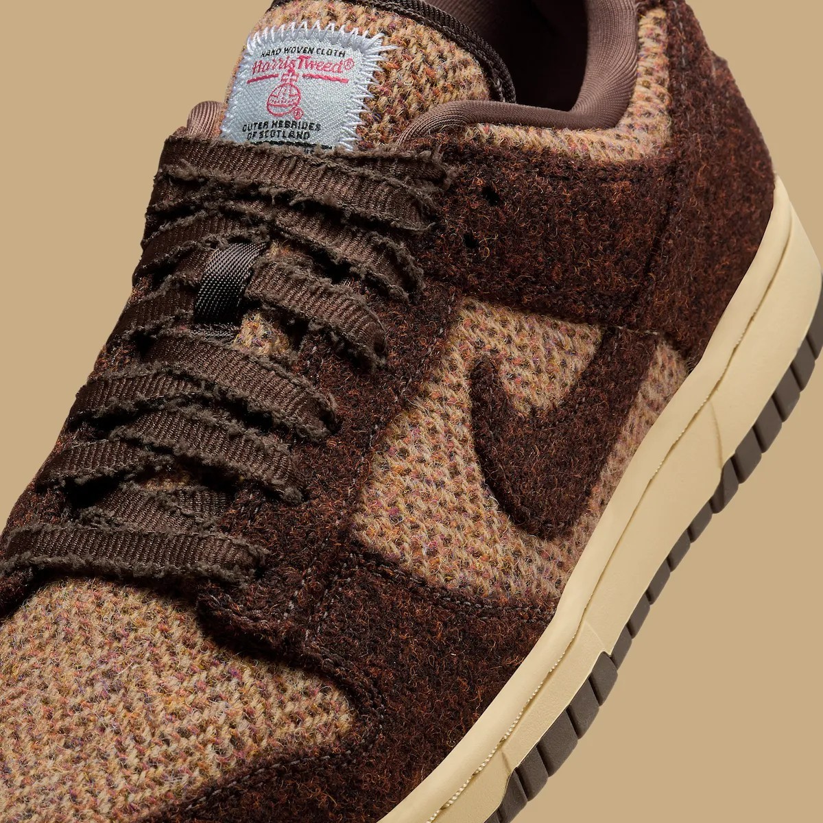 Harris Tweed 以其来自苏格兰的优质手工编织羊毛而闻名,为经典的 Dunk Low 带来了精致的复古风格。