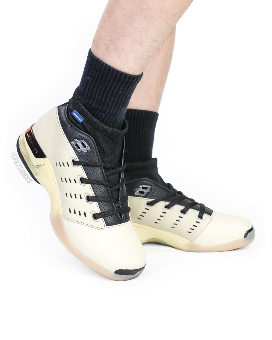 选择低帮版本的 Air Jordan 17 Low 为联名主体,鞋身辅以米色覆盖,鞋领注入黑色打孔皮革妆点。