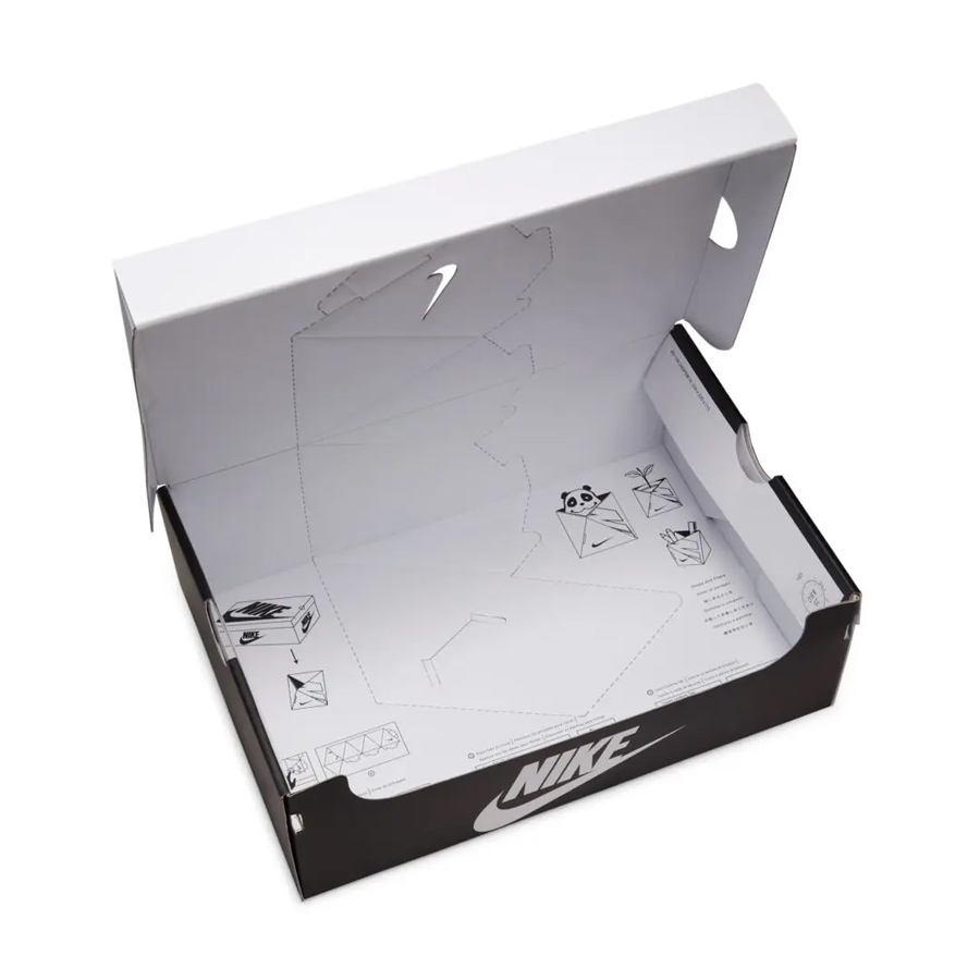 除此之外,鞋盒在致敬经典黑白熊猫配色外,还注入了手工 DIY 设计,按照鞋盒内的步骤,可以折叠出熊猫主题的收纳盒,非常有意思。