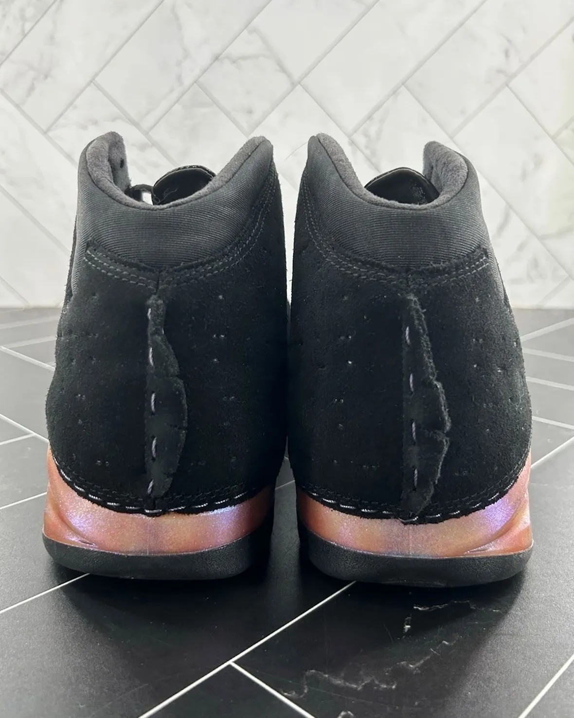 黑色绒面鞋身的图案模仿太阳散射出的光线,取代了原来的缝线刺绣,鞋舌醒目点缀 Jordan Brand Classic 字样,突显稀有的专属身份。