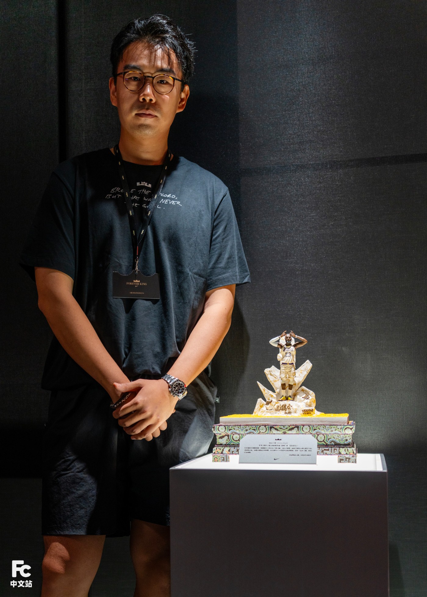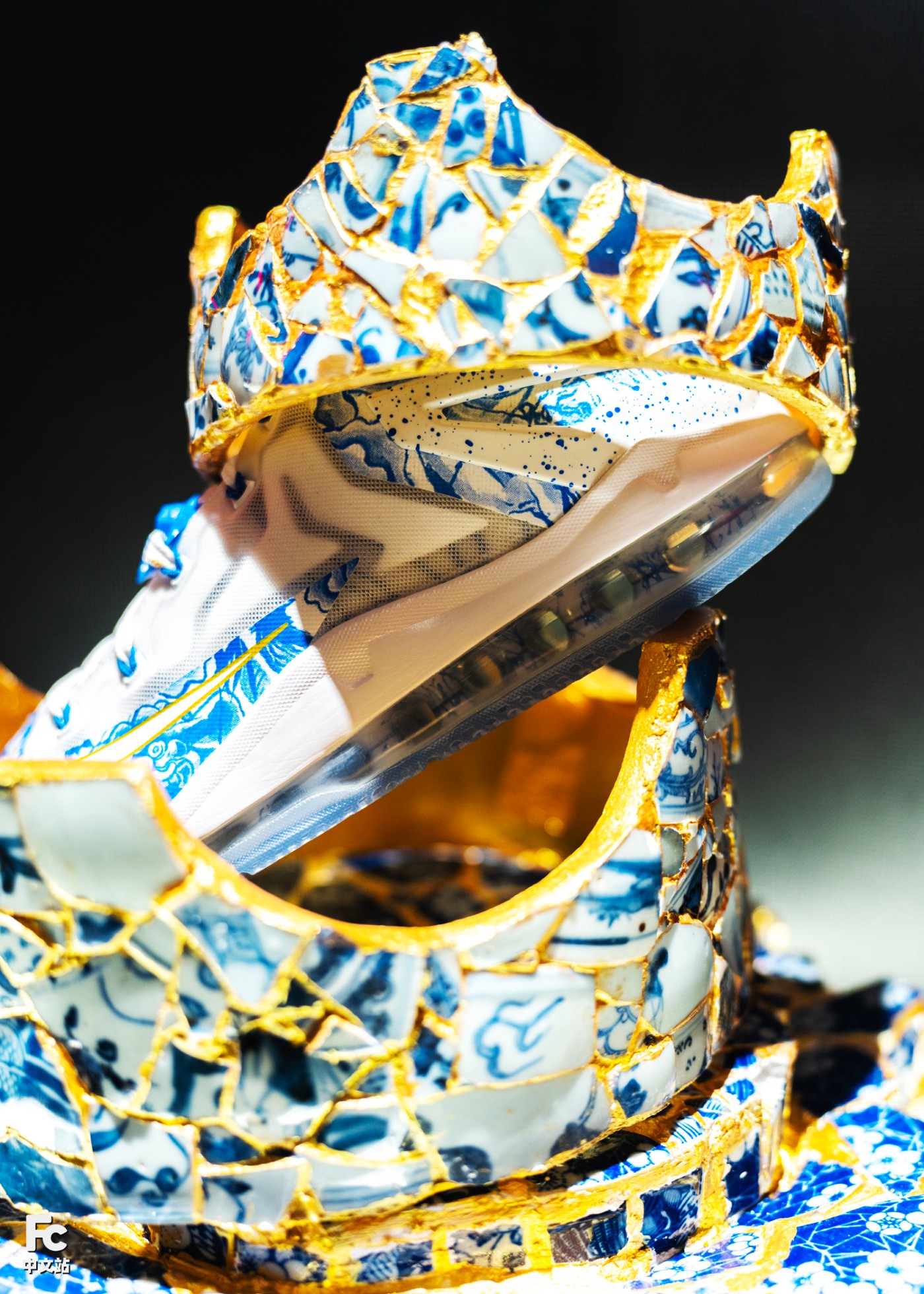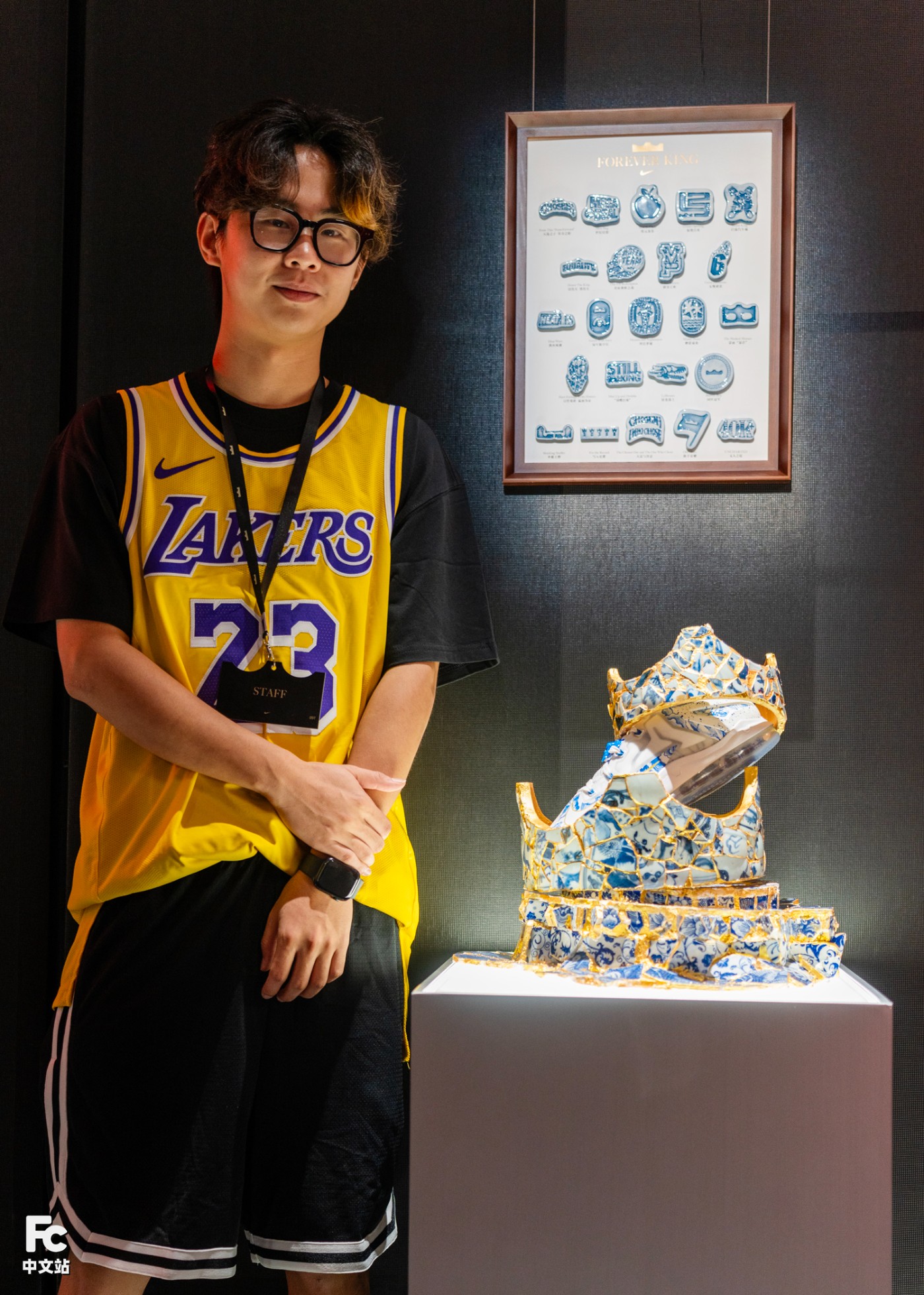 除此之外,现场还陈列有国内艺术家为詹姆斯特别打造的球鞋艺术装置。