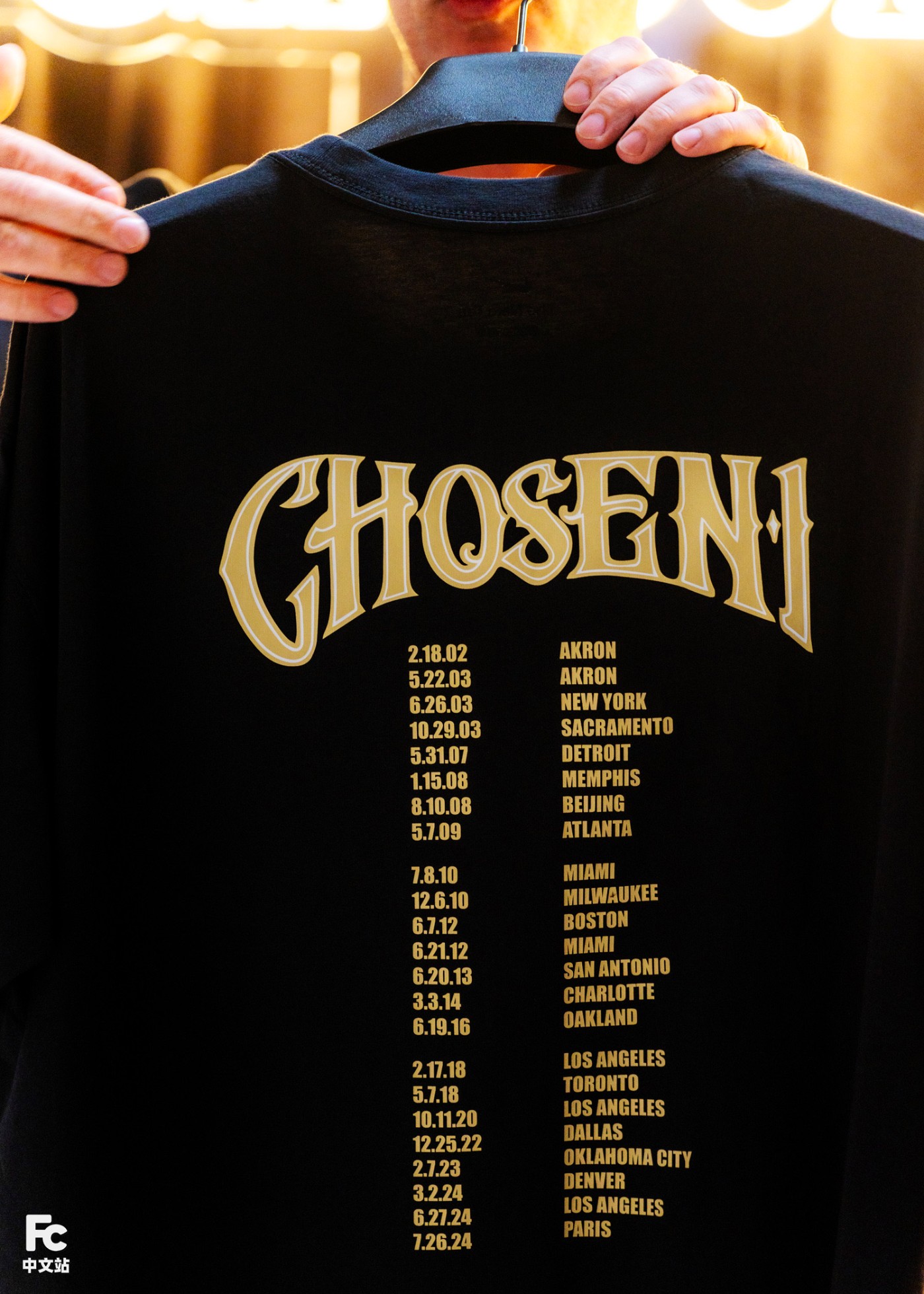 通过短袖所呈现的细节图案与球鞋所承载的配色,相互配合,最大限度传递勒布朗每一次重要历史时刻的主题元素。