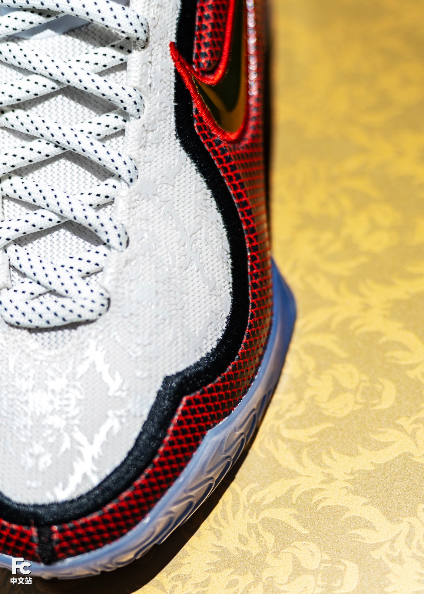 配置方面,LBJ23 在该系列中首次搭载全掌 ZoomX + Cushlon 3.0 可拆卸内嵌式中底,并在鞋垫背面镶嵌了一块面积非常大的碳板,兼顾轻盈回弹与抗扭表现。