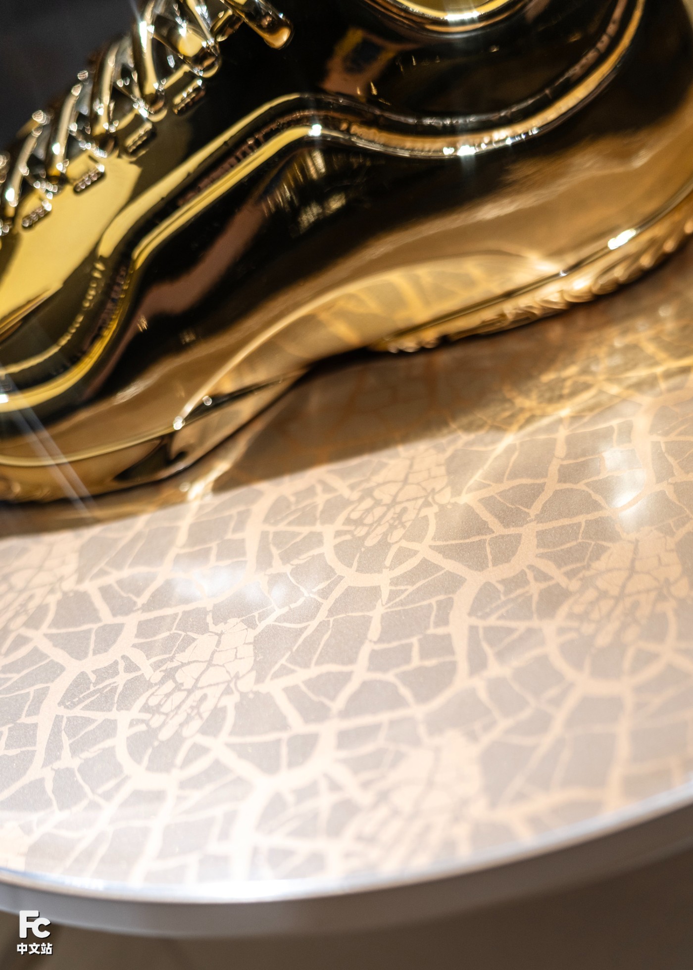 不过细心的小伙伴可以从承托金靴的托盘纹理中,窥见每款配色专属的独特鞋面纹理,我们能够进一步与主题灵感进行脑补想象。