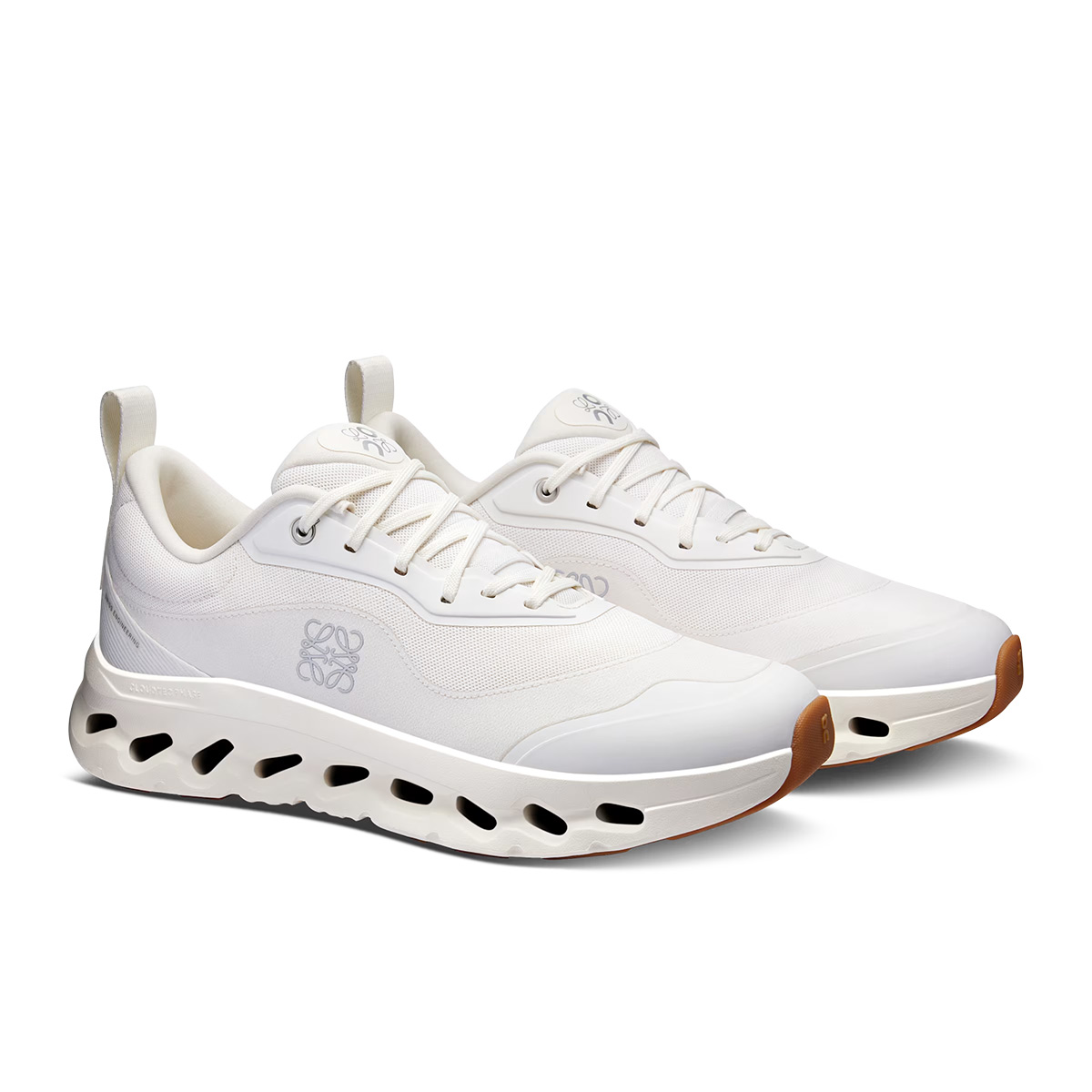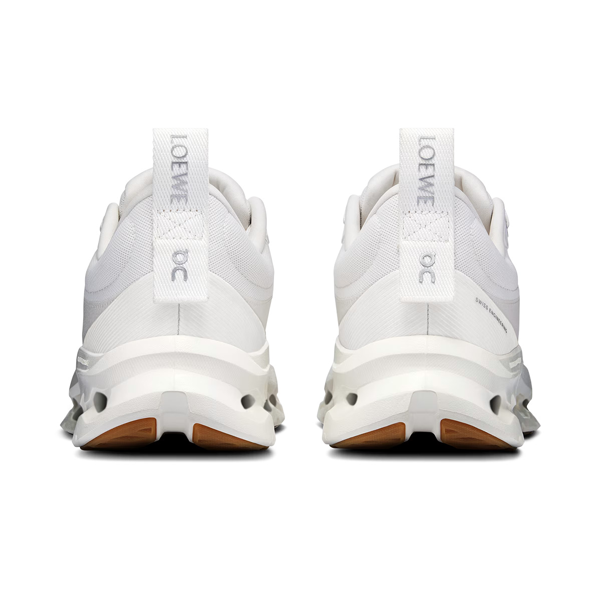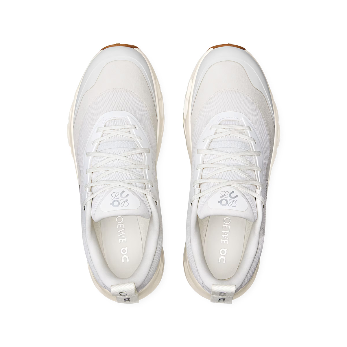 整体采用了简约淡雅的设计风格,鞋身 Logo 以不对称的方式呈现,从右边看只能看到 Loewe Logo,而从左边看则只能看到 On Logo。