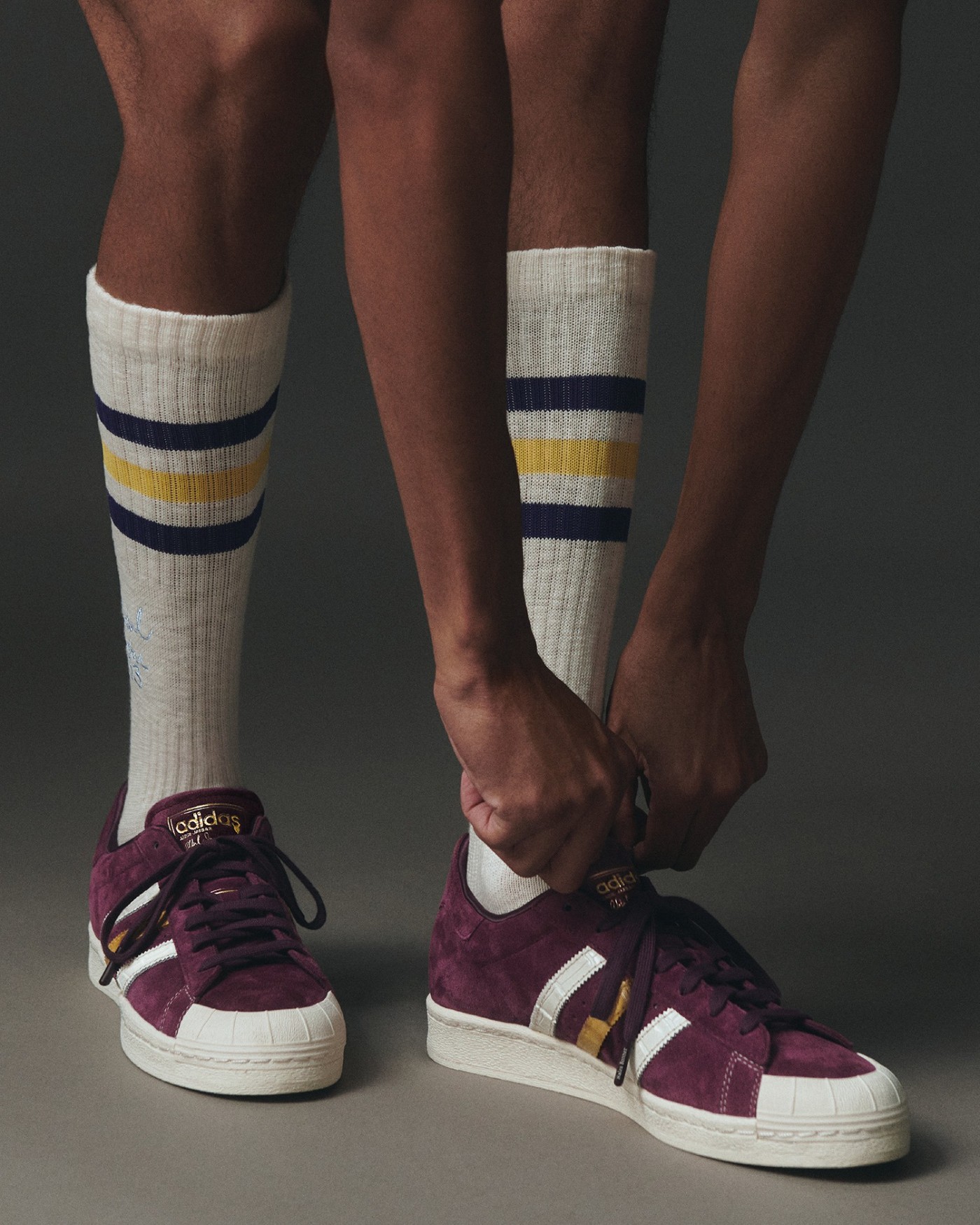 鞋款单品方面,adidas Jabbar 得以重新演绎,鞋舌上的金色天勾印花直击主题。