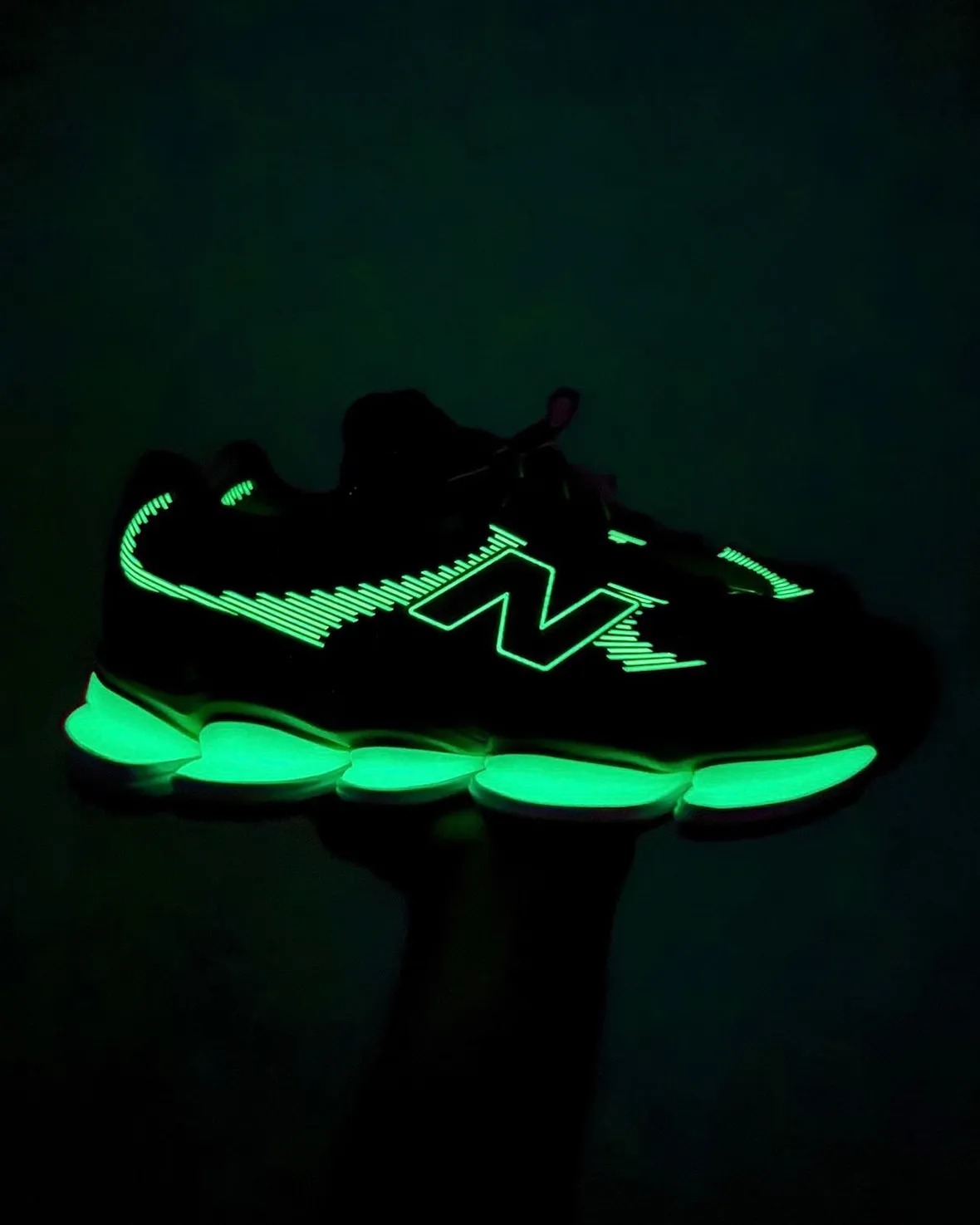 并且,除开鞋底,鞋面也带有一定的夜光效果,让这双鞋在弱光环境下更具个性。
