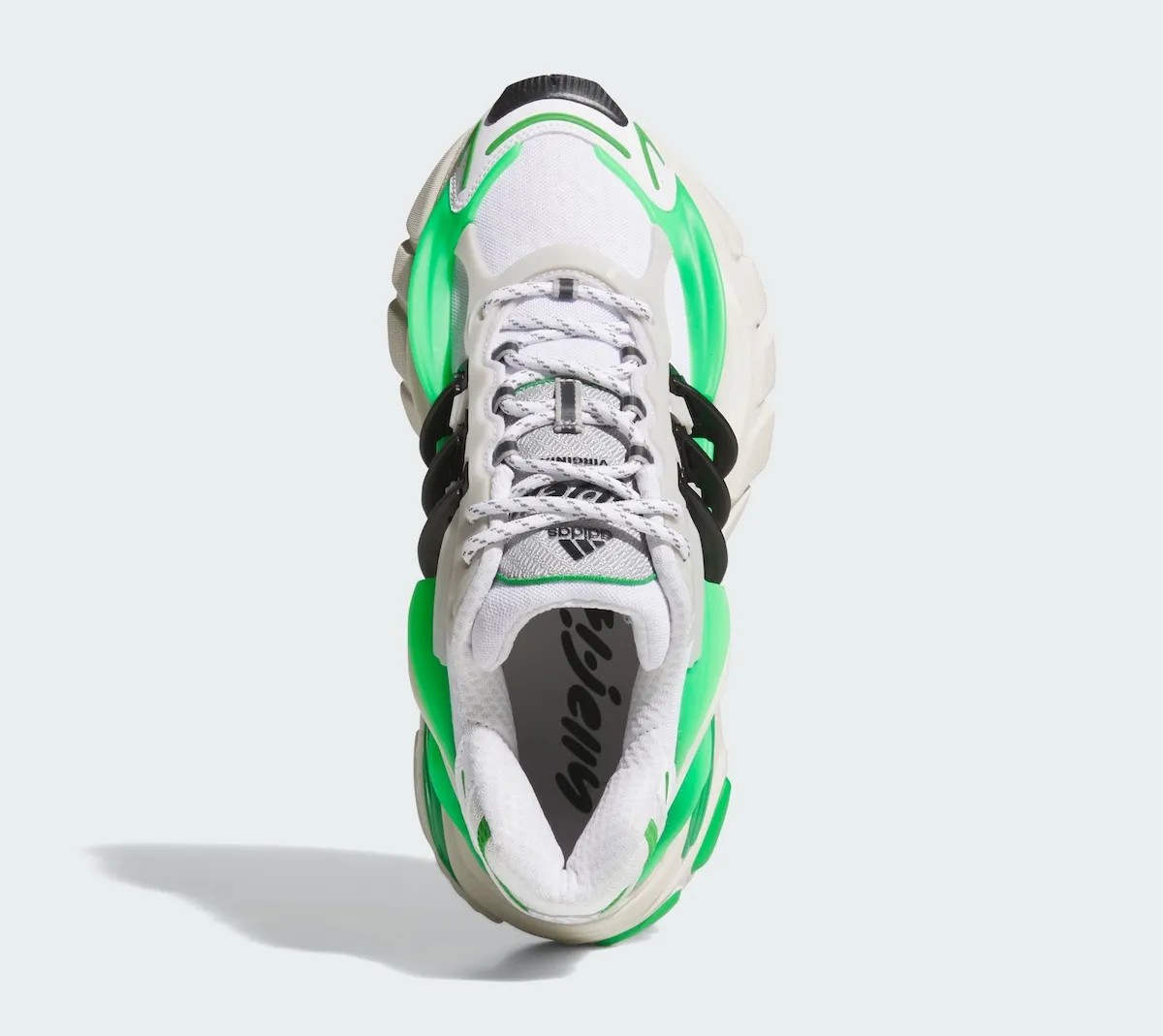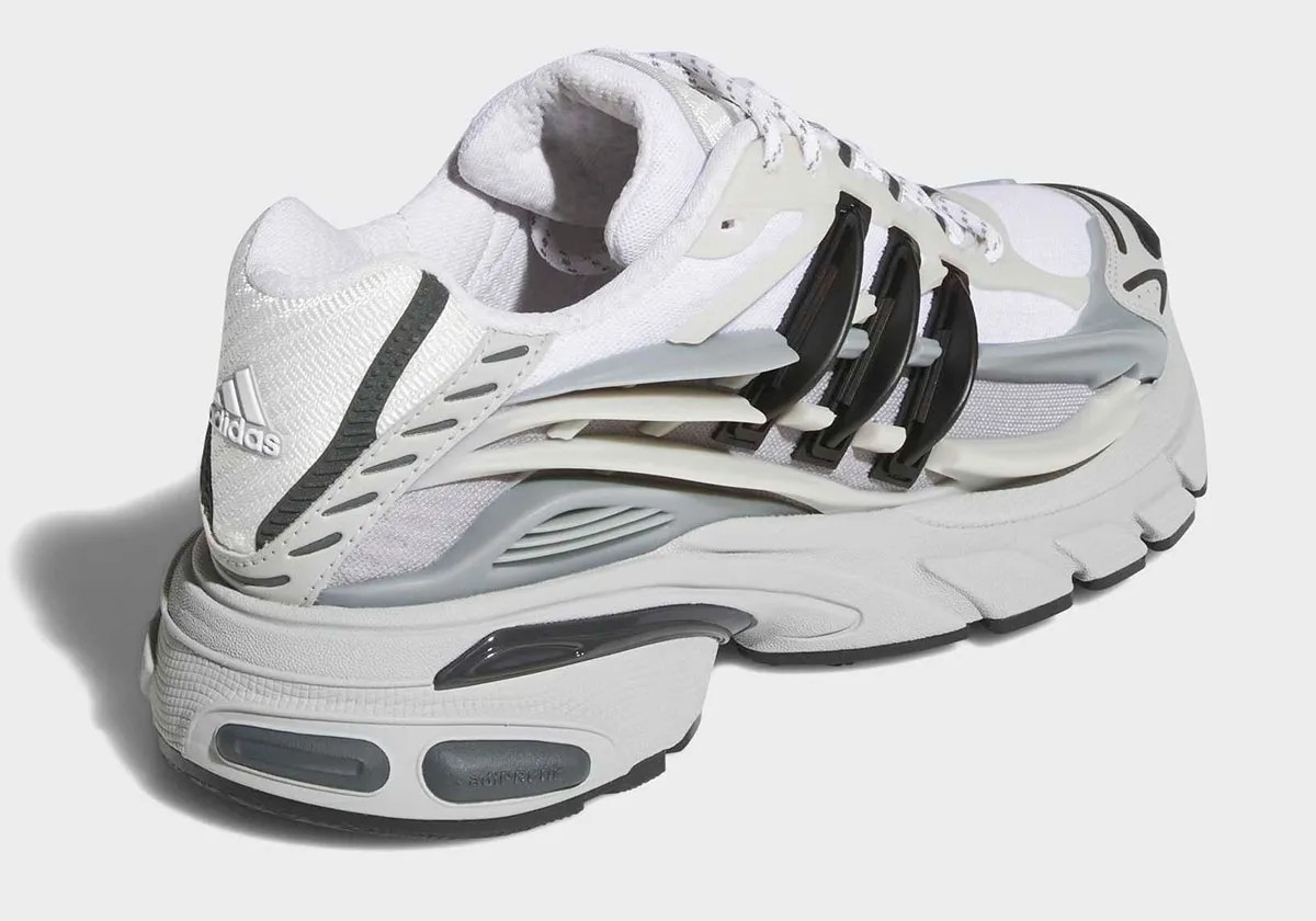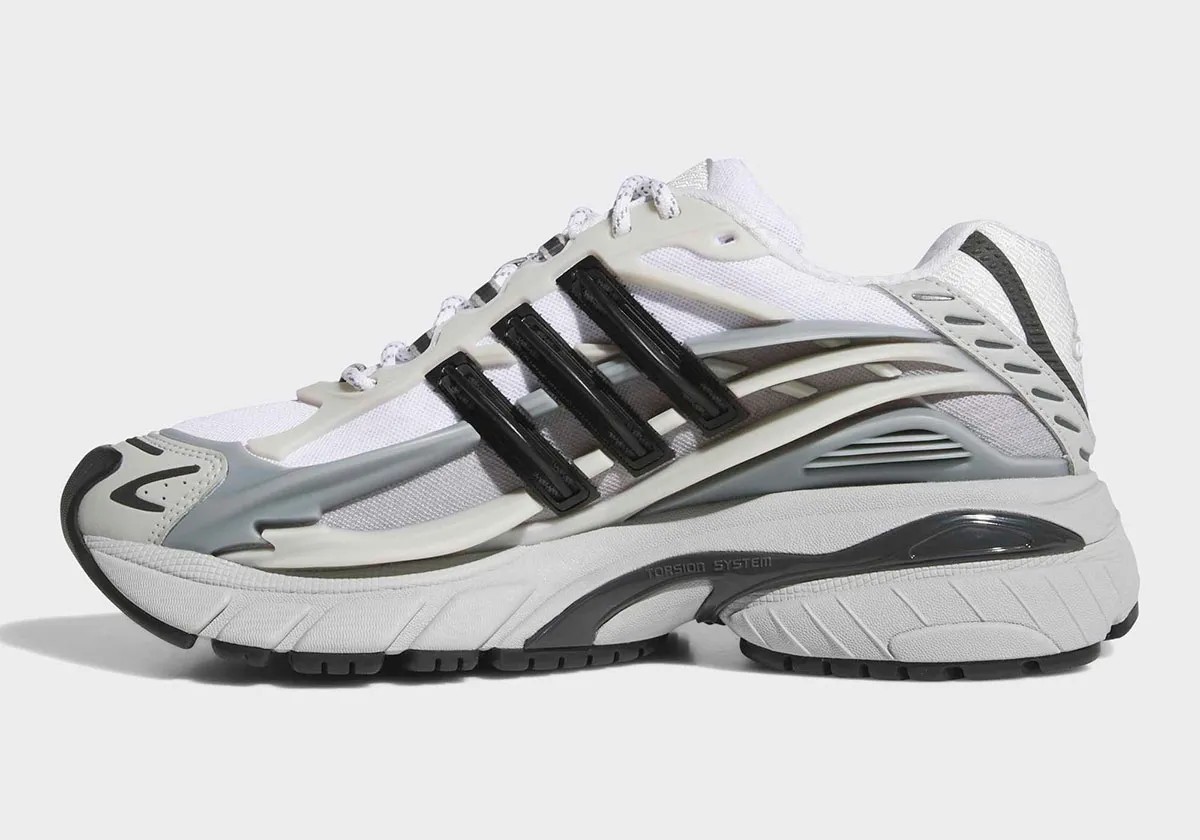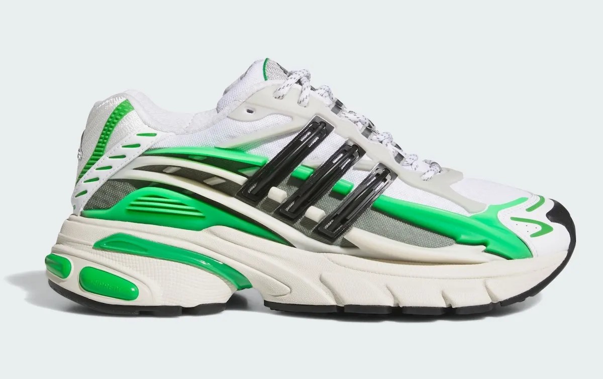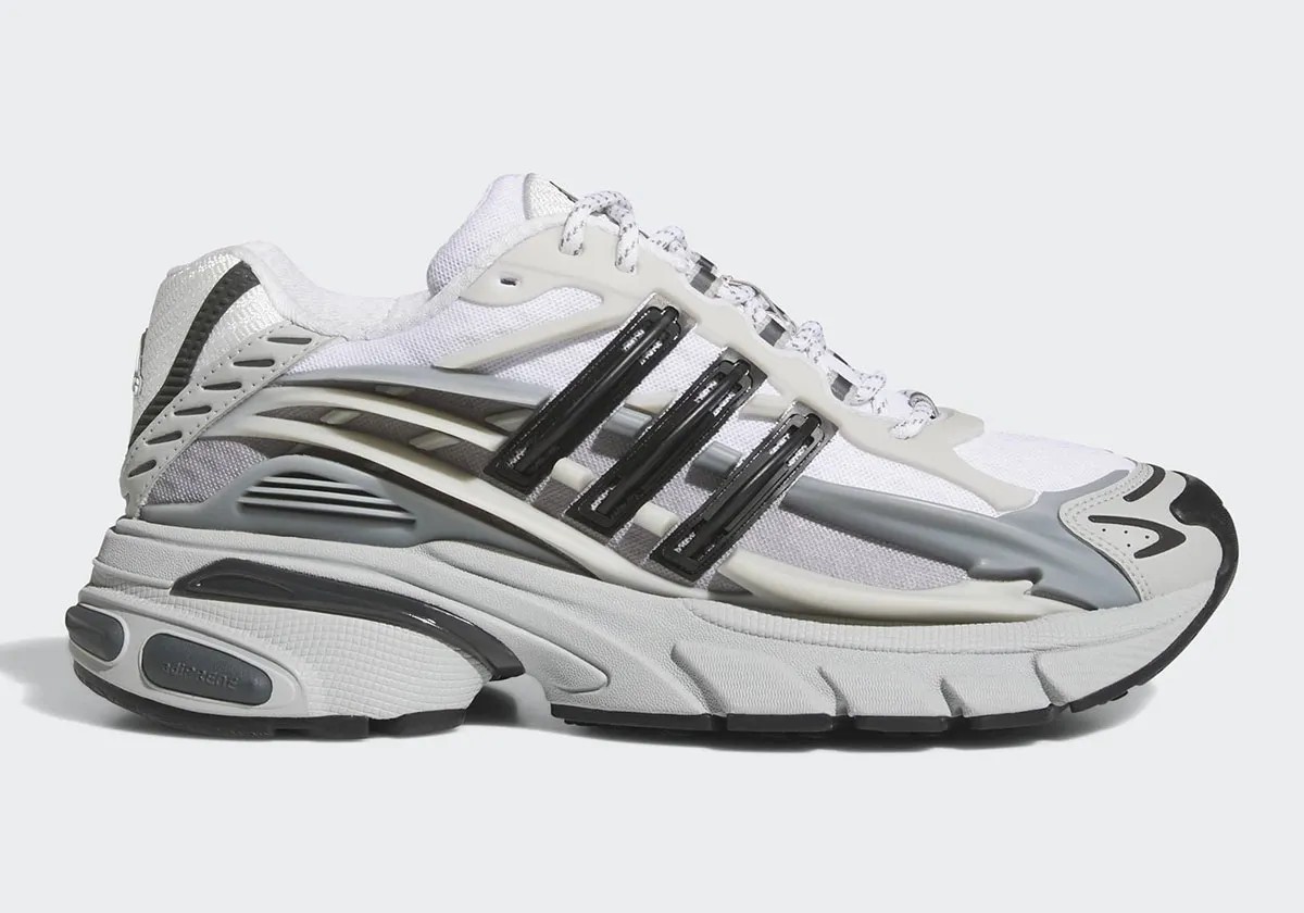 廓形轮廓,并通过注塑感线条呈现出外骨骼造型,颜值十分特别。中底搭载 adiPRENE 缓震,脚感也有保证。