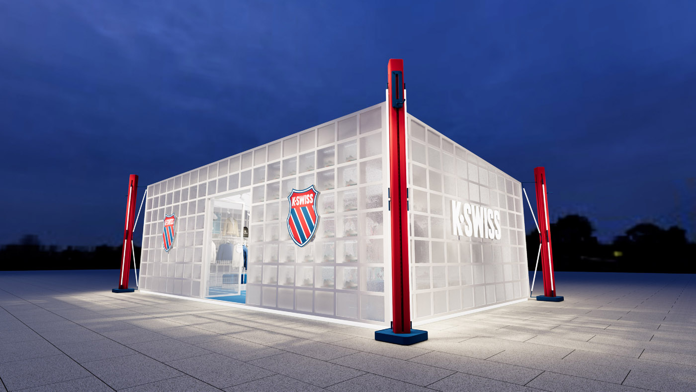 赛场外,K·SWISS 在杭州、上海、武汉打造融合 “K” 字母与网球场元素的科技感展位。
