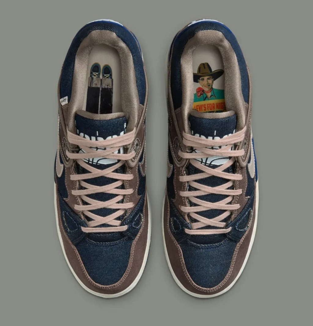 鞋身细节也不少,包括鞋垫图案、鞋舌刺绣、后跟重新设计的 Nike Logo 等等,都在彰显着这次联名的独特排面。
