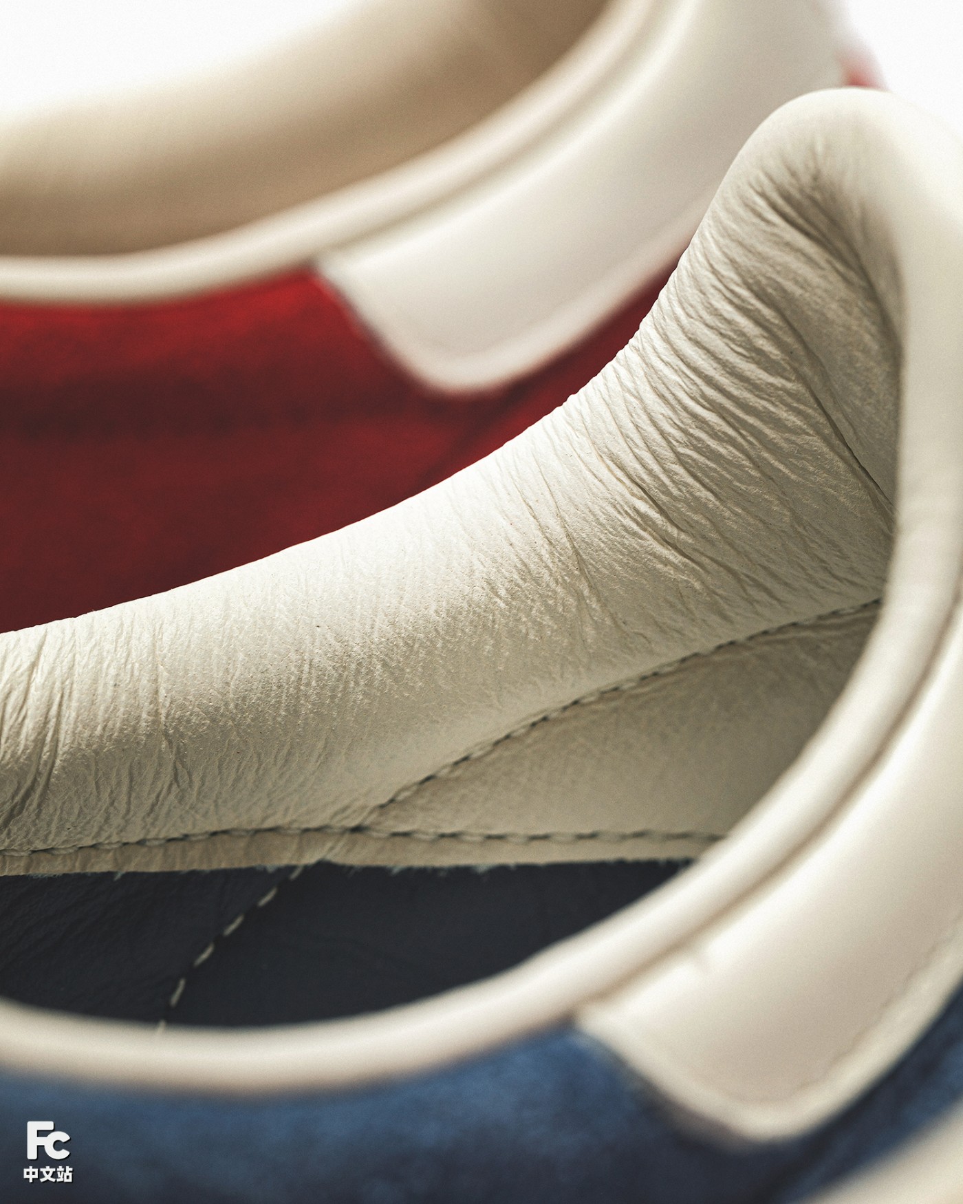 不同于常见的麂皮面料,这次用到的长绒麂皮赋予鞋款独特刷色感,带来极佳的视觉感受和触感,忍不住上手摸摸。