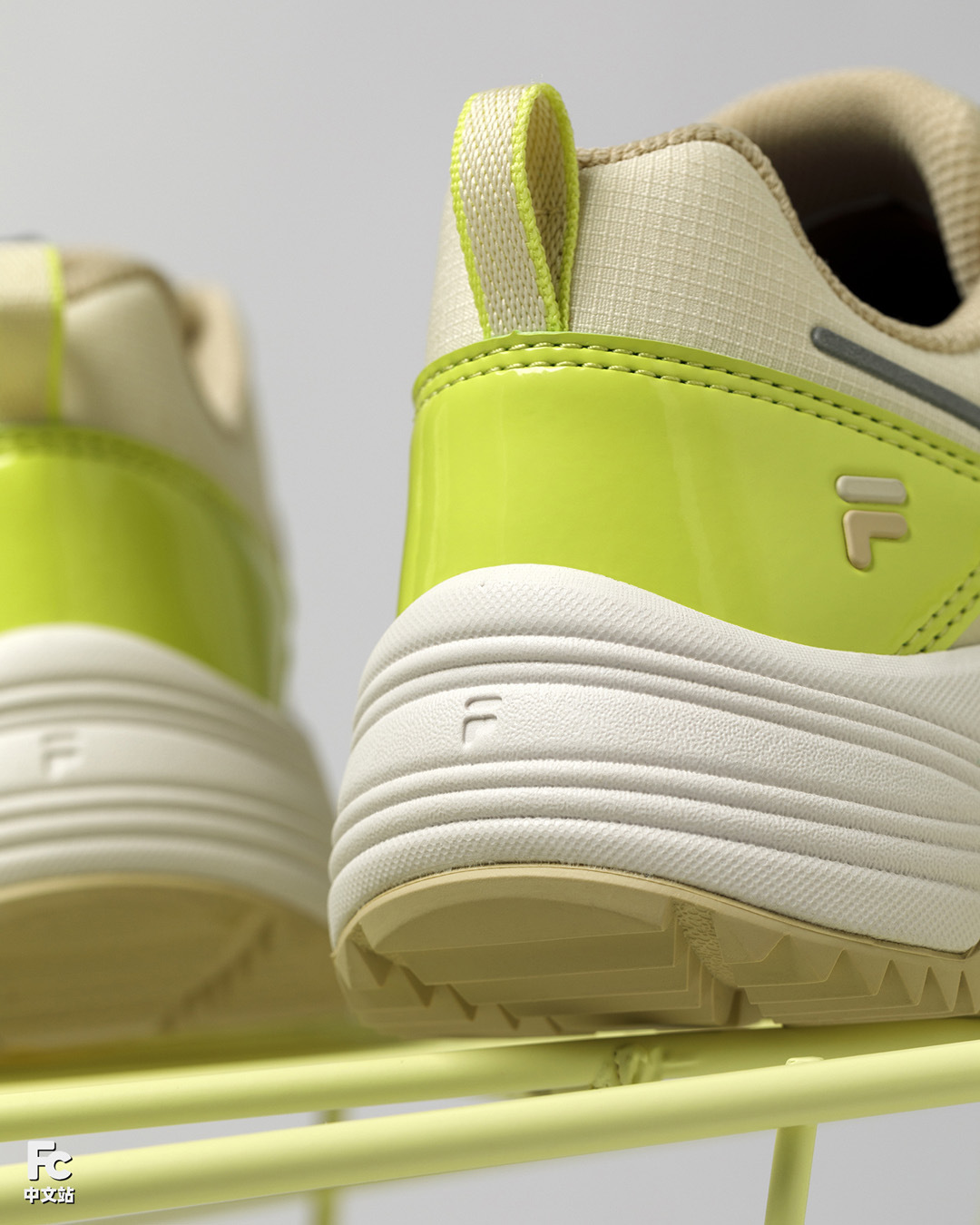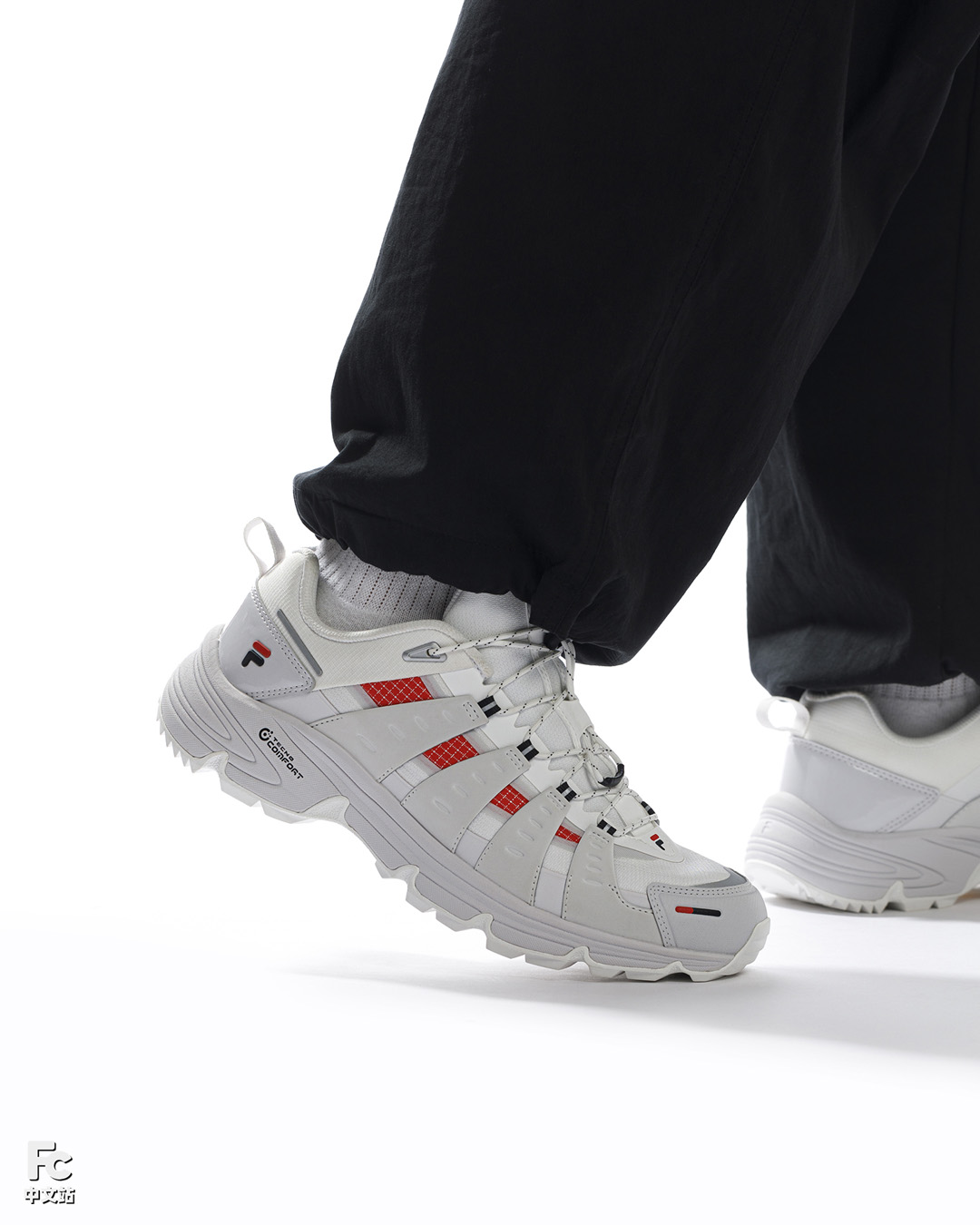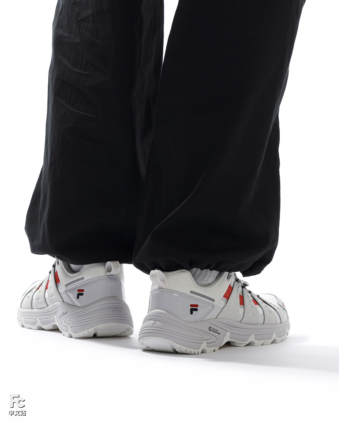 贯穿于矩阵支撑之间的,则是标志性的 FILA FLAG 设计。