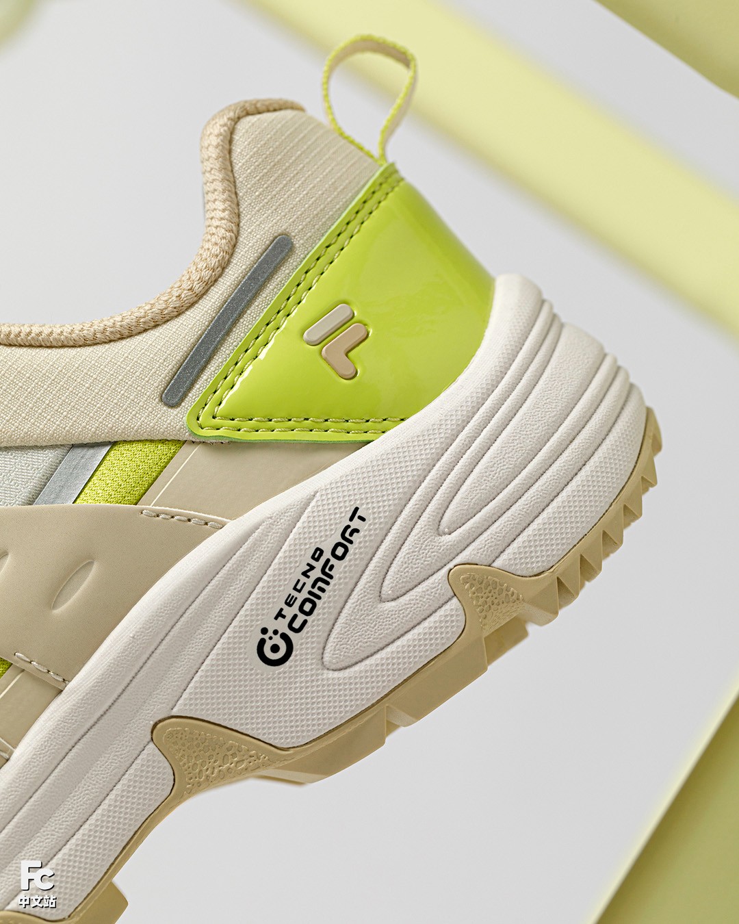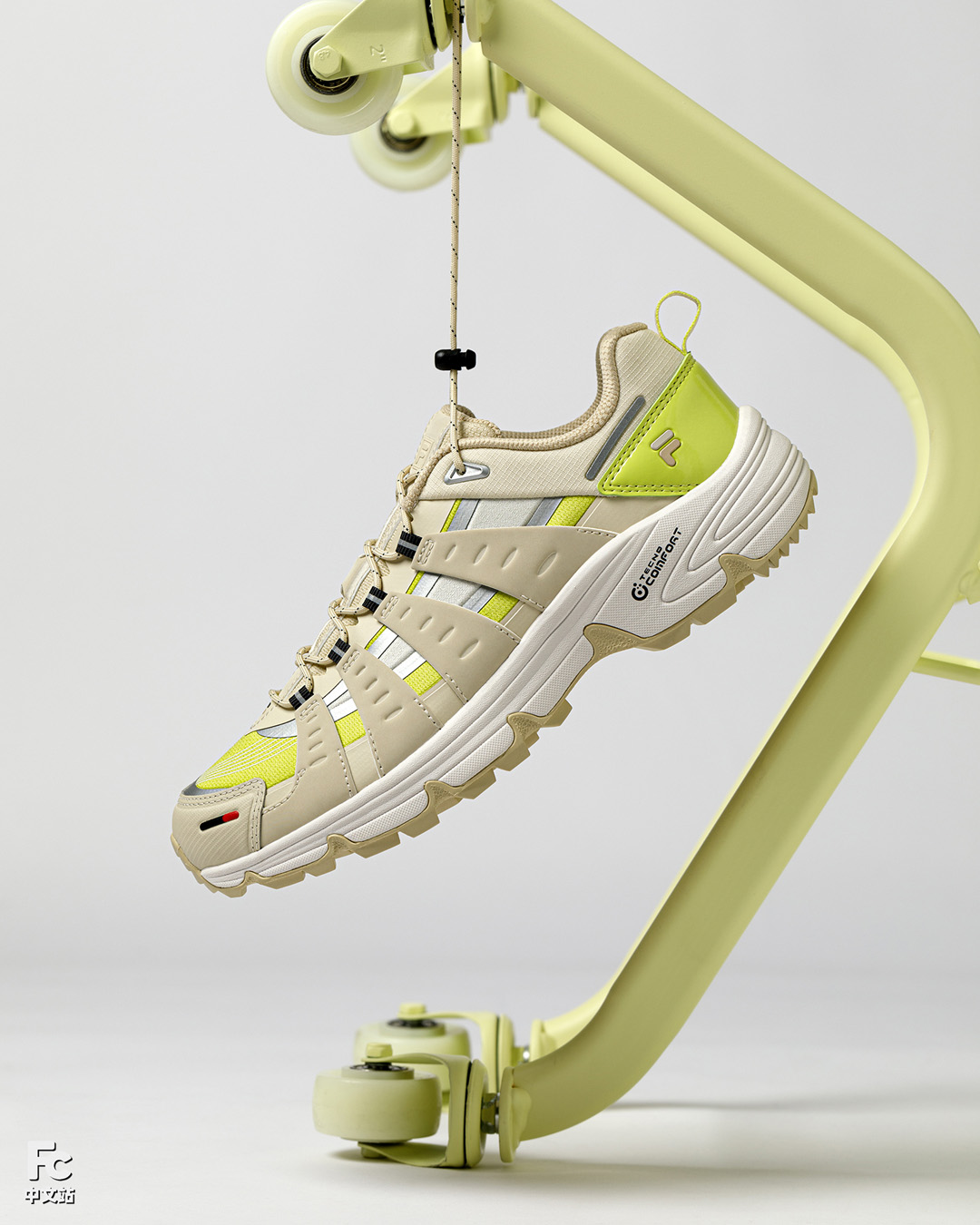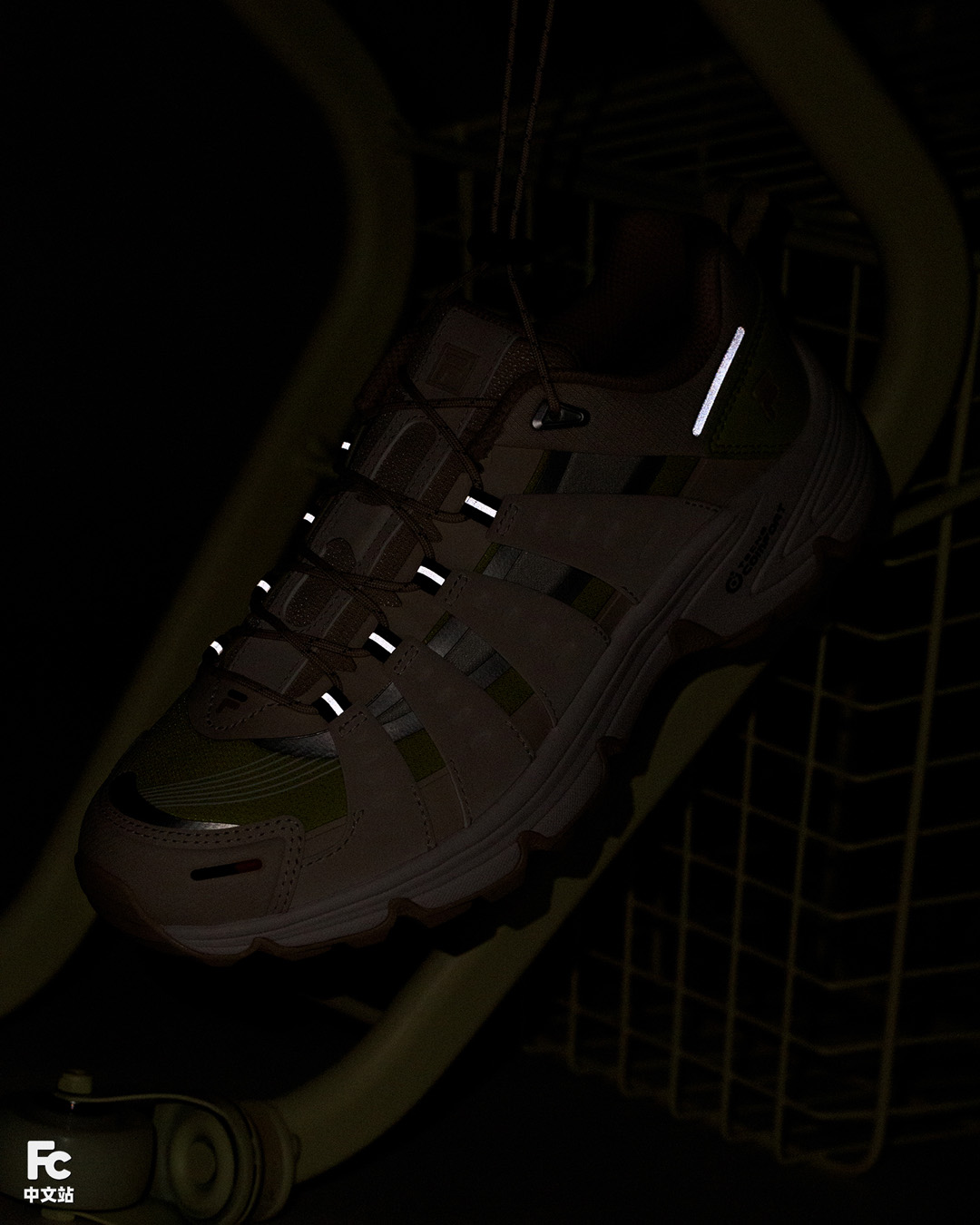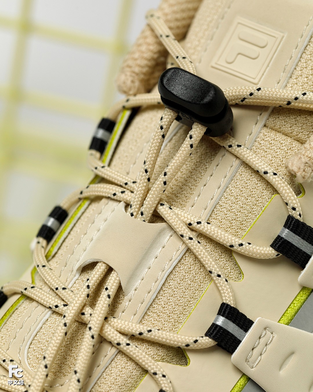 贯穿于矩阵支撑之间的,则是标志性的 FILA FLAG 设计。