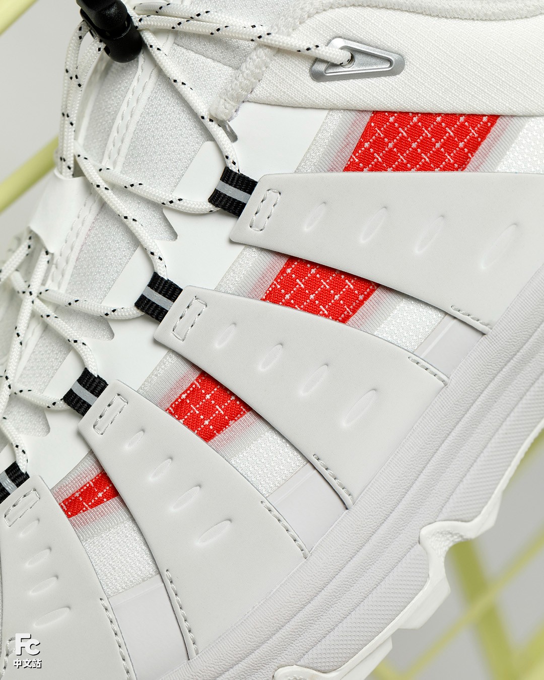 无论是远观还是近赏,这双白红装扮的「湖羽白」配色都有着丰富的视觉层次,不同材质的质感组合,在保证户外性能的同时,颜值也不妥协。